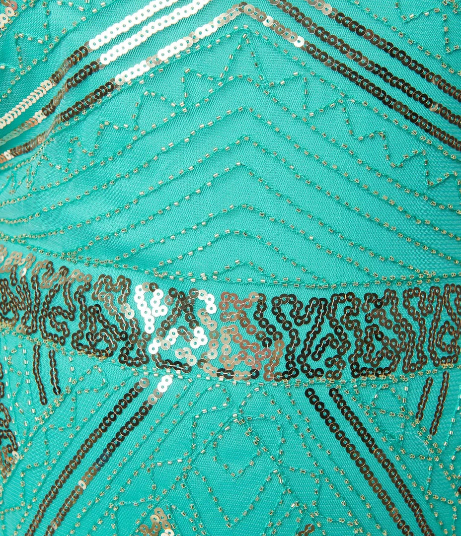 Budget ❤️ Unique Vintage Plus Size 1920s Turquoise & Gold Sequin Flapper 👗 Dress Flapper 👗 Dresses ❤️