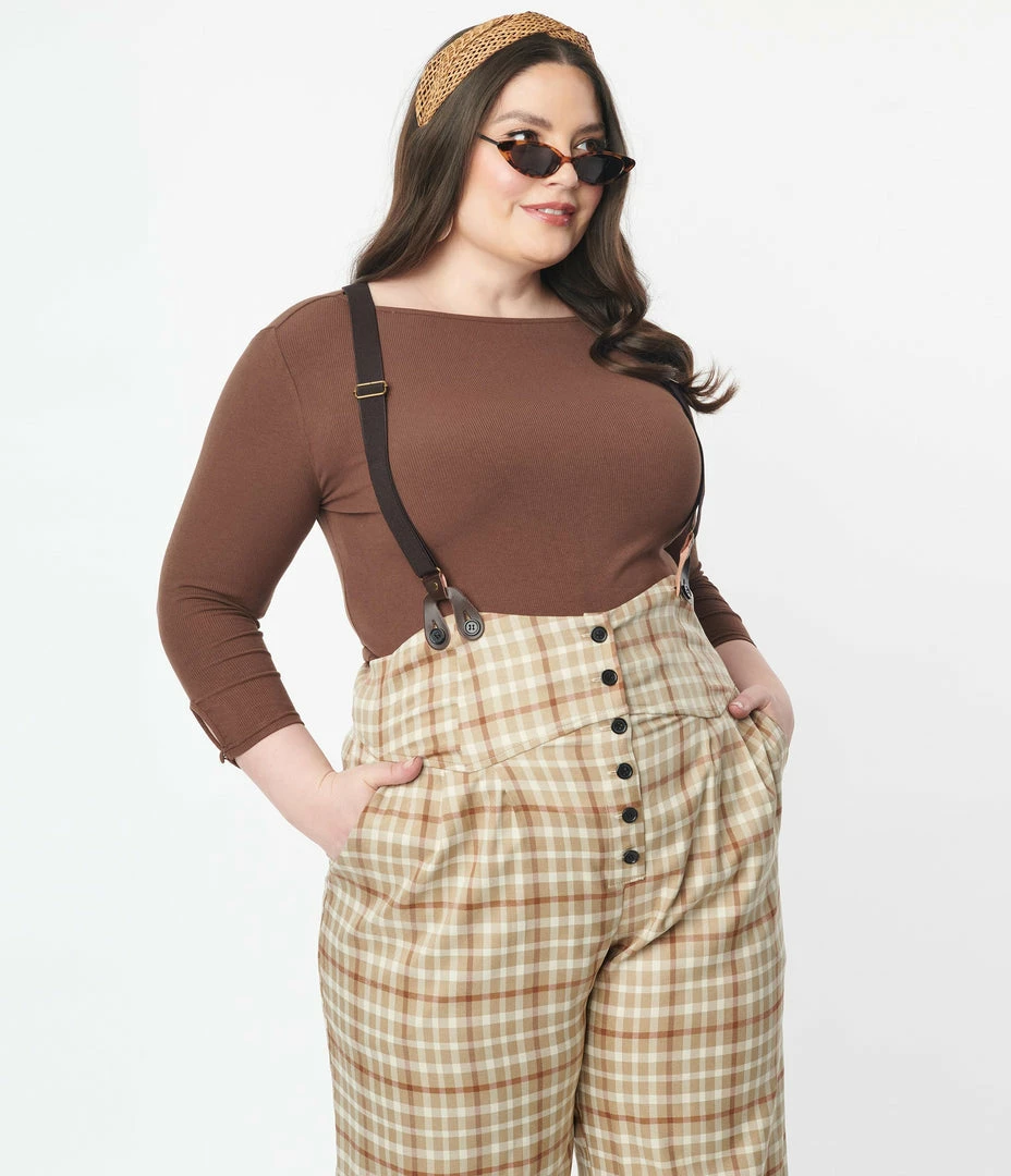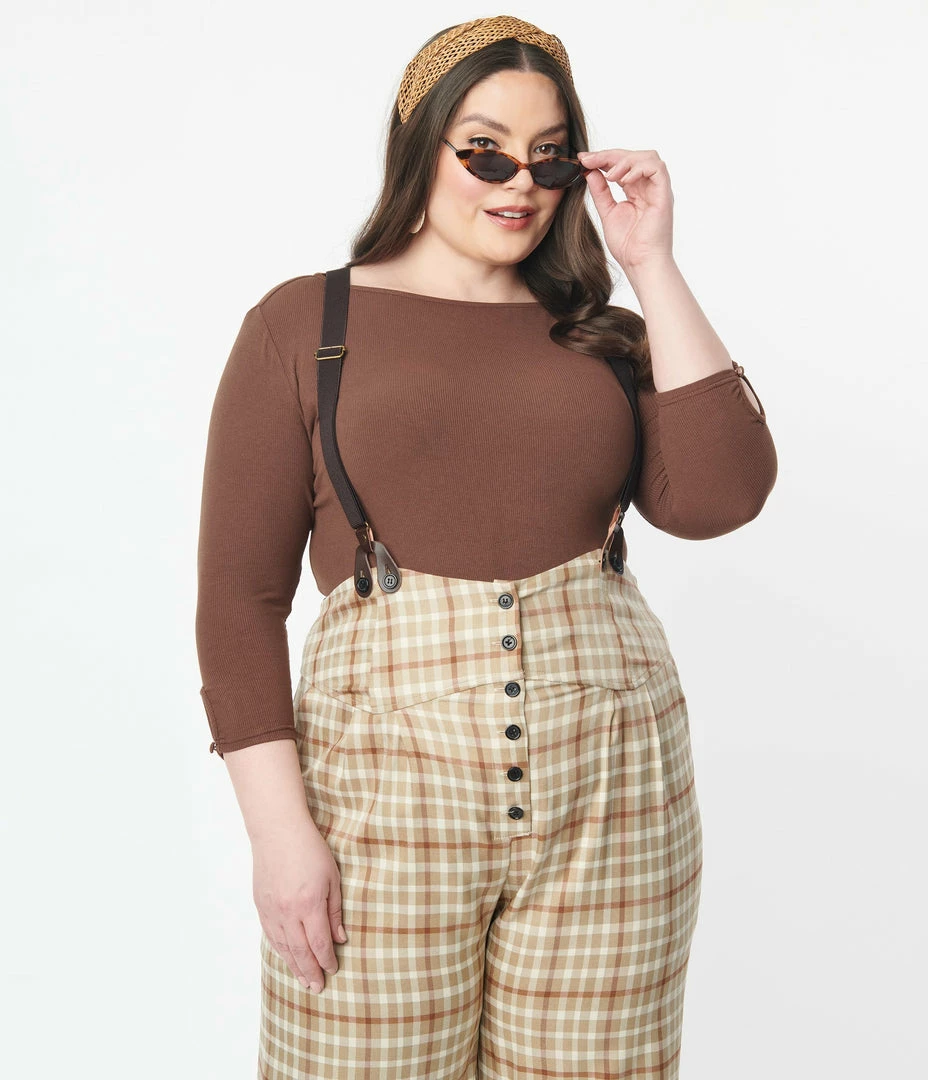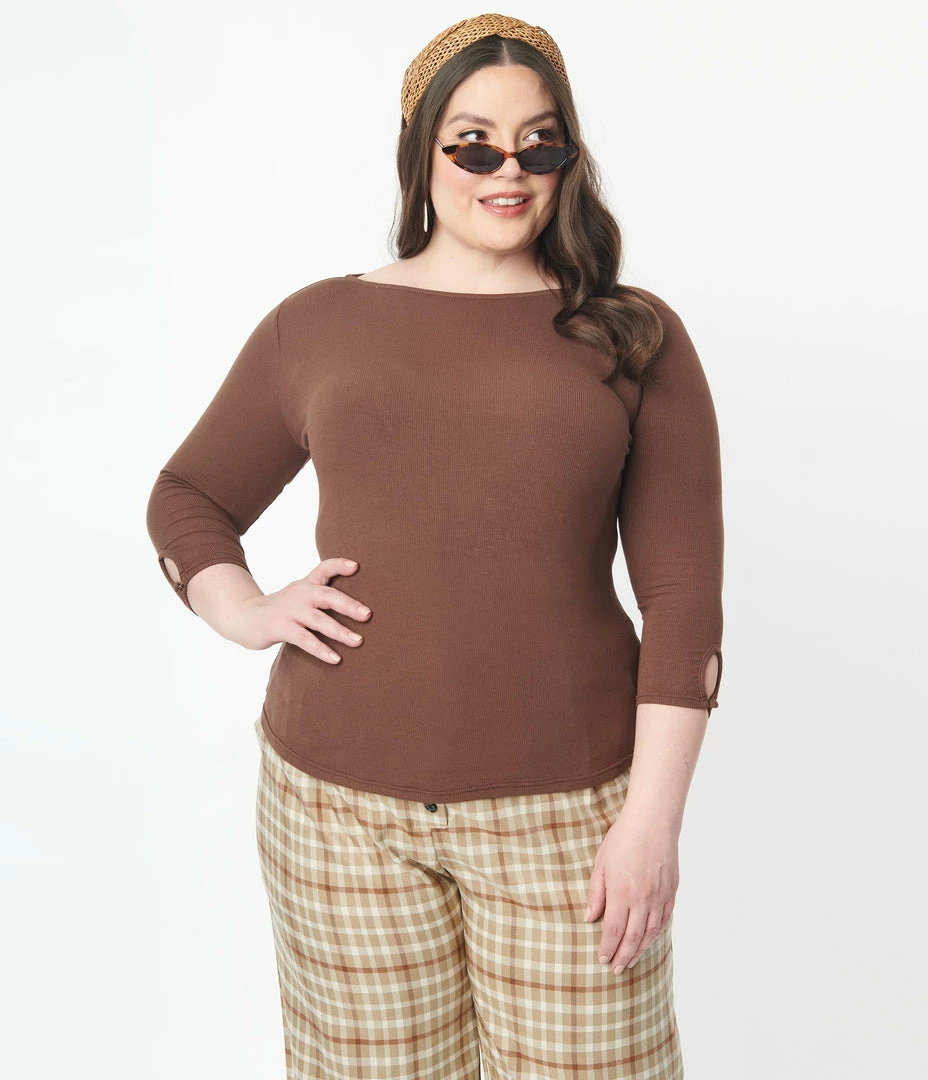 Outlet ๐ Unique Vintage Plus Size 1950s Brown Gracie Top โจ