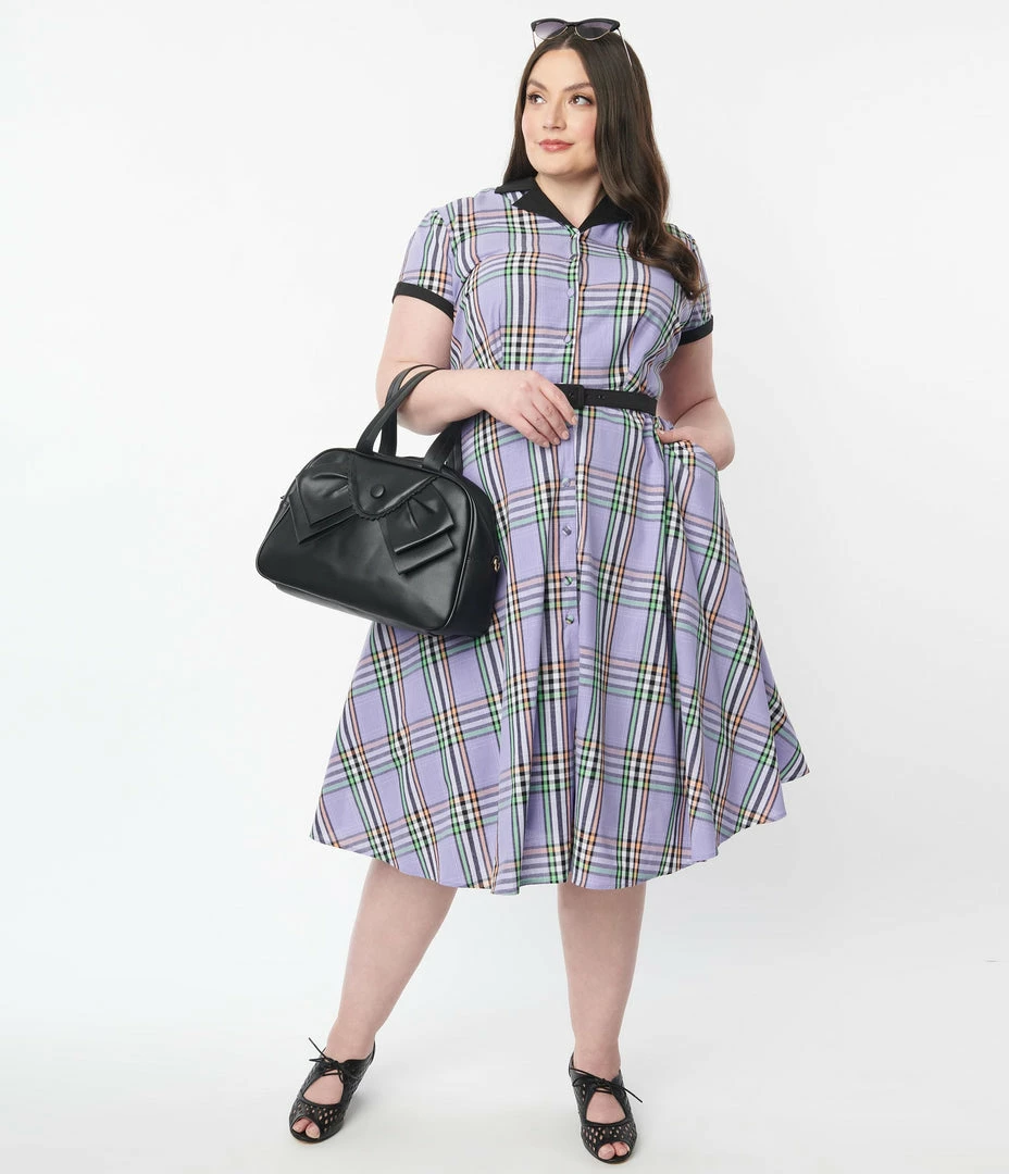 Coupon ๐ Unique Vintage Plus Size 1950s Lavender Plaid Alexis Swing ๐ Dress ๐งจ