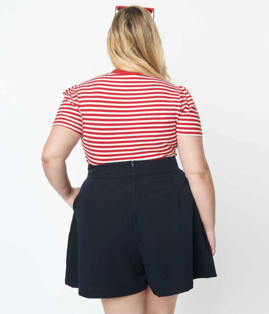 Discount ⭐ New Arrivals! Unique Vintage Plus Size Navy & Red Plaid Print Shirley Crop Top ❤️