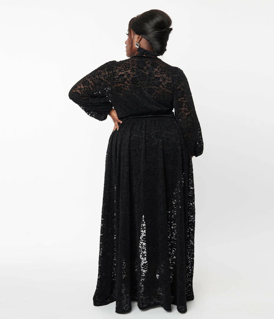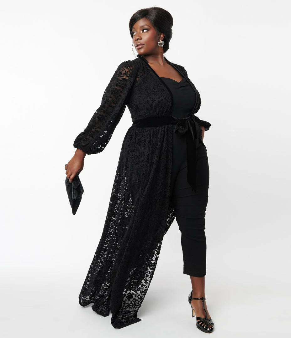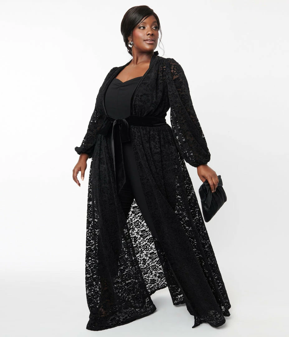 Hot Sale ๐ Unique Vintage Plus Size Black Black Flocked Lace Hollywood Duster New Arrivals! ๐