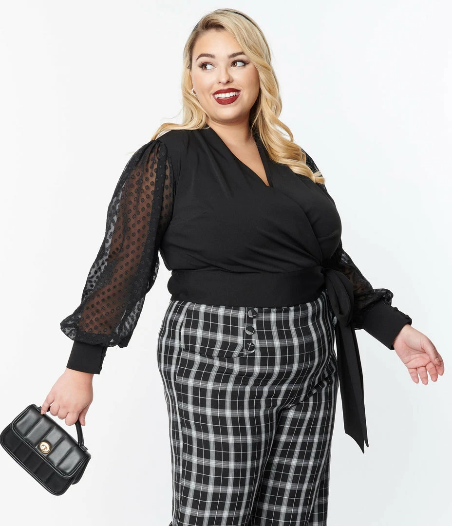 Budget 😍 Unique Vintage Plus Size Black Clip Dot Giselle Wrap Top New Arrivals! ⌛