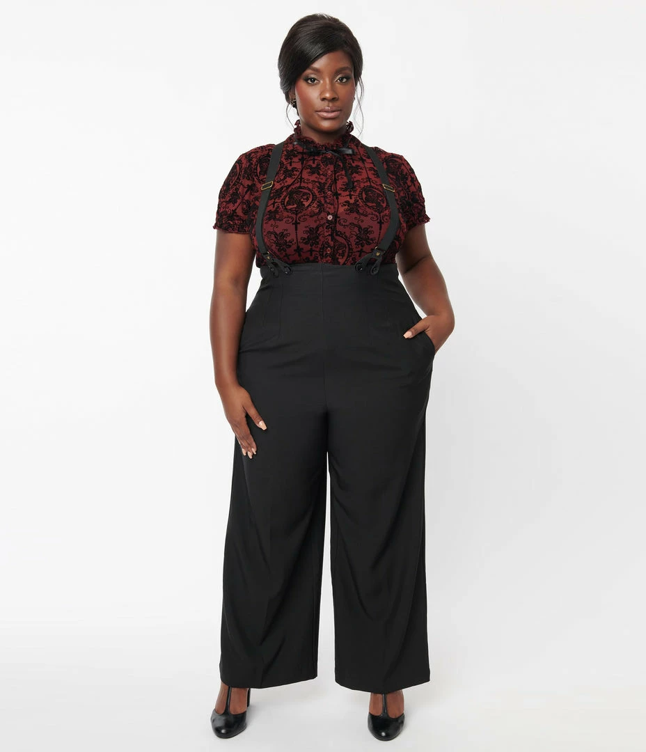 Flash Sale 🔔 Unique Vintage Plus Size Black High Waist Suspender Pants 👏