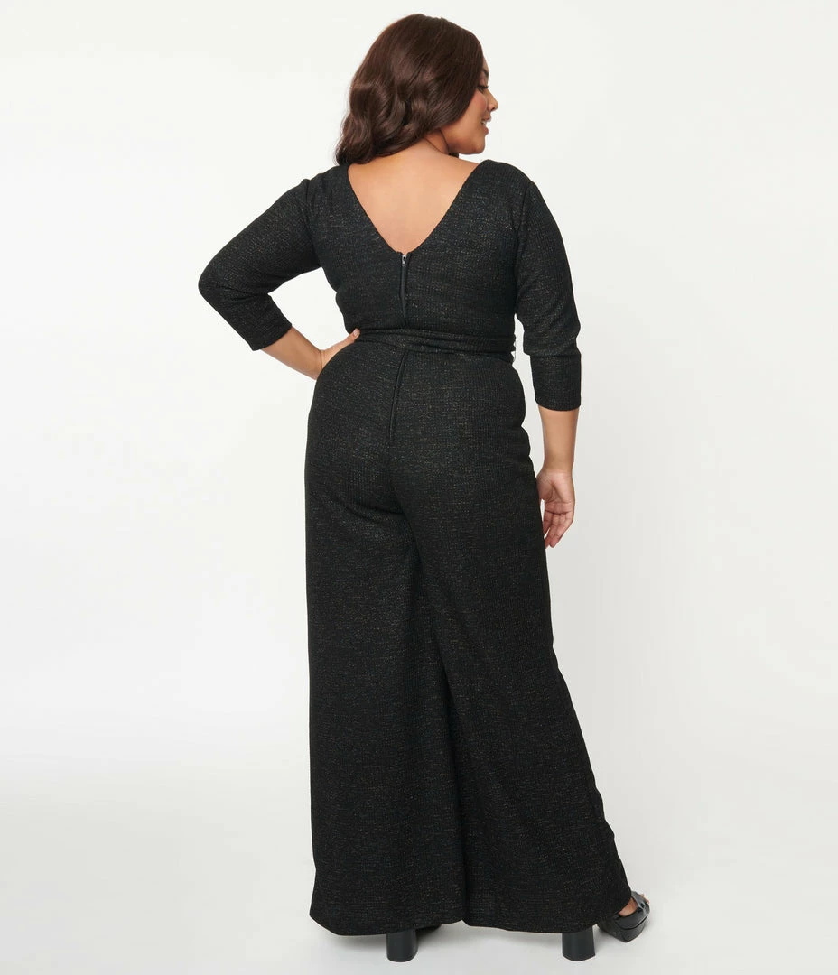 Best Sale ๐คฉ Unique Vintage Plus Size Black Marled Knit Sparkle Gloria Jumpsuit โ๏ธ