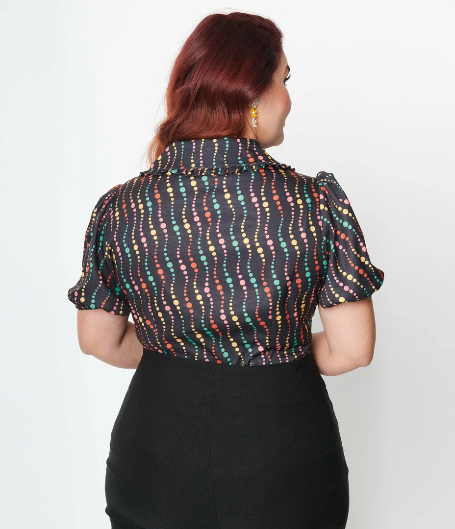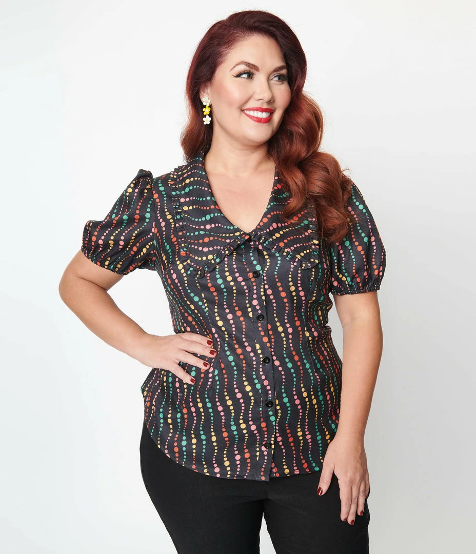 Top 10 ๐ฏ Unique Vintage Plus Size Black & Rainbow Dots Blouse New Arrivals! ๐