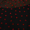 A divine staple crafted in a sheer black mesh with red Swiss dotted hearts throughout. The ruffled high neck is cinched with back buttons.