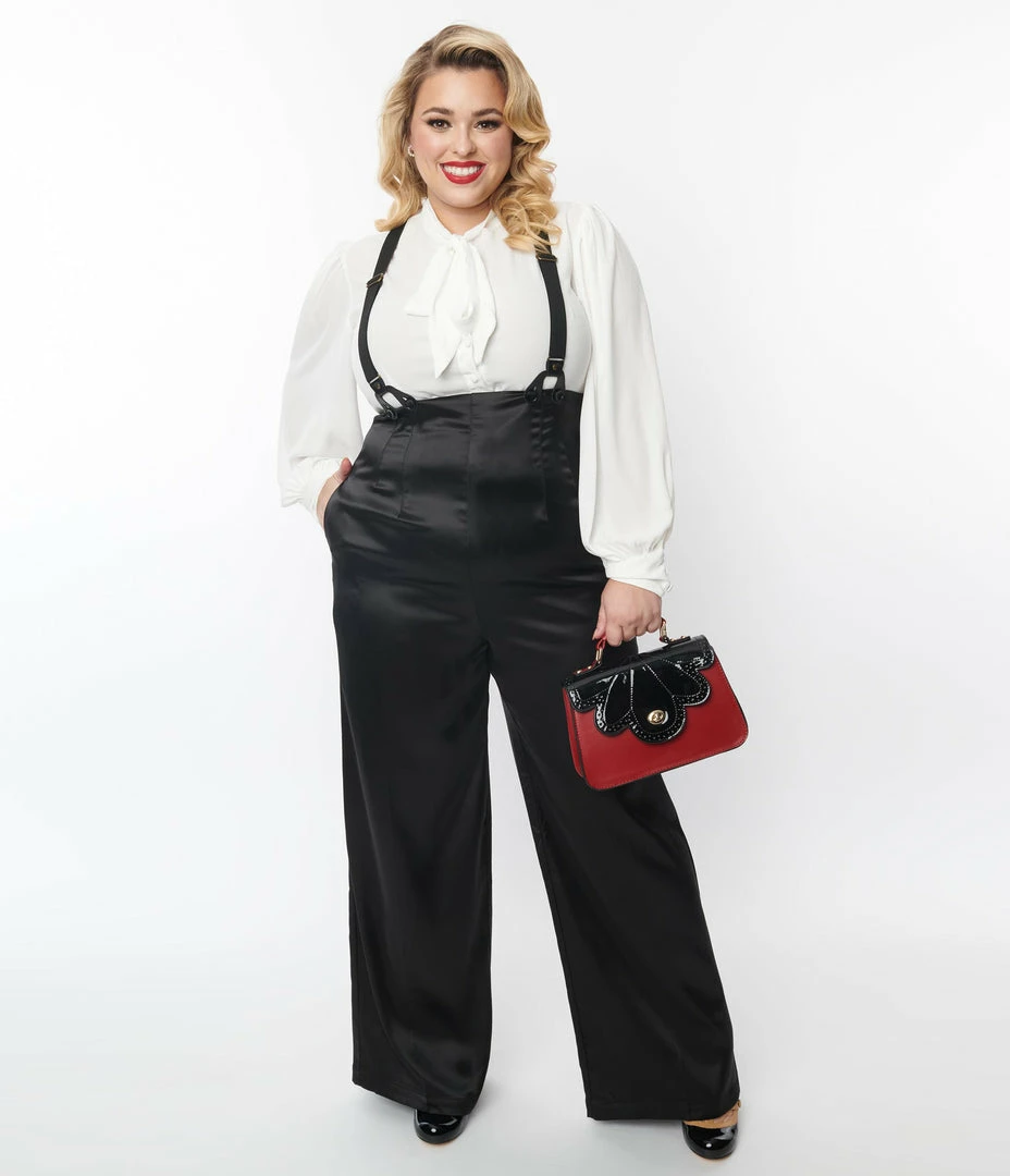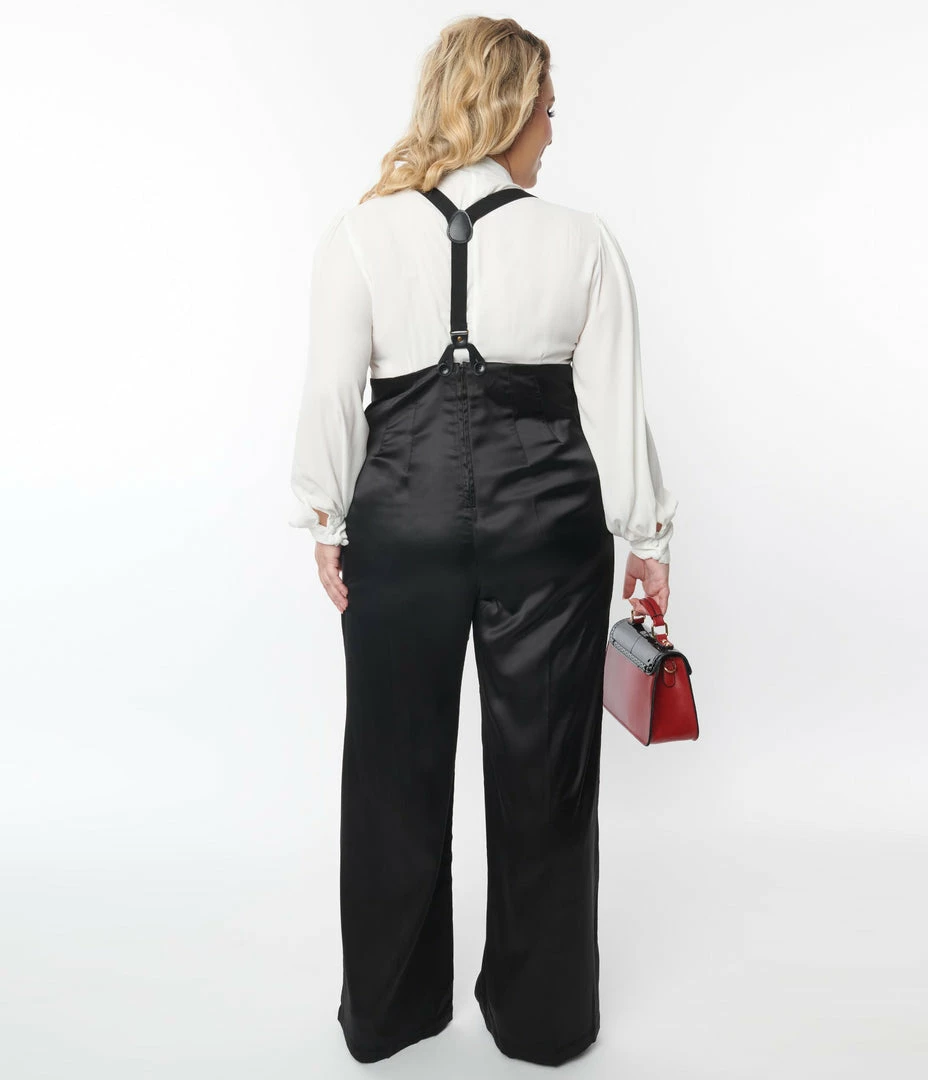 Best deal โ๏ธ Unique Vintage Plus Size Black Satin High Waist Suspender Pants ๐งจ