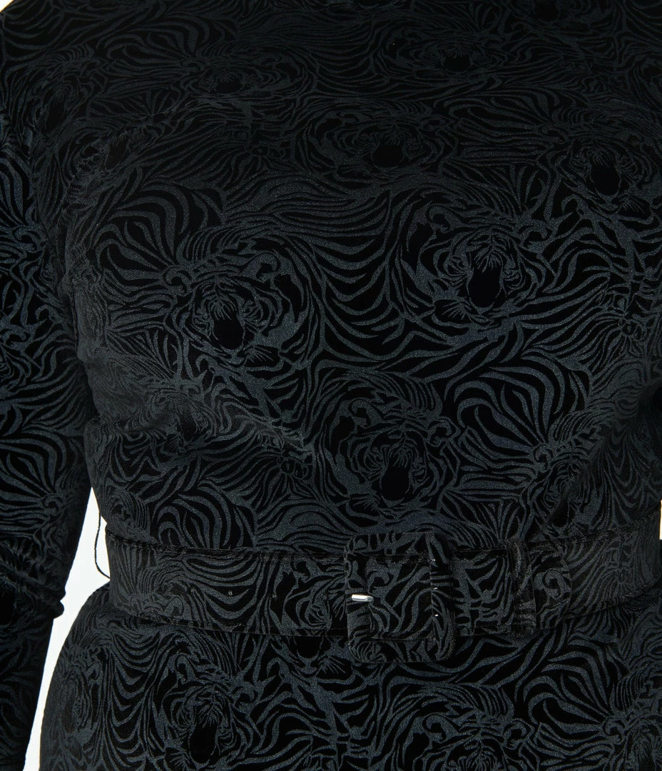 Outlet 💯 Unique Vintage Plus Size Black Tiger Embossed Velvet Jaqueline Pencil 👗 Dress Clothing 🎉