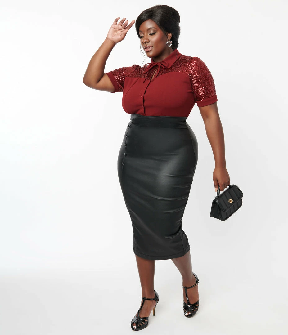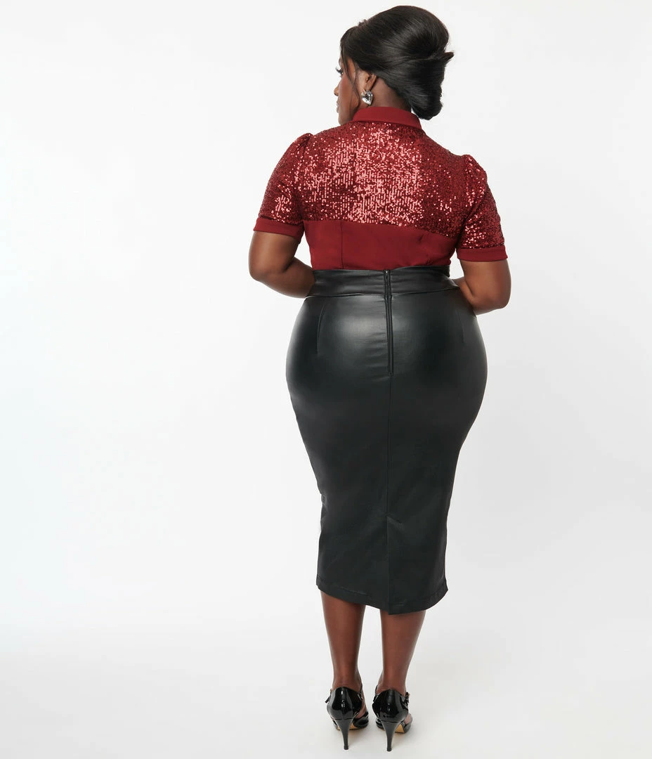 Best Pirce 🌟 Unique Vintage Plus Size Black Vegan Leather Wiggle 👗 Skirt 👍