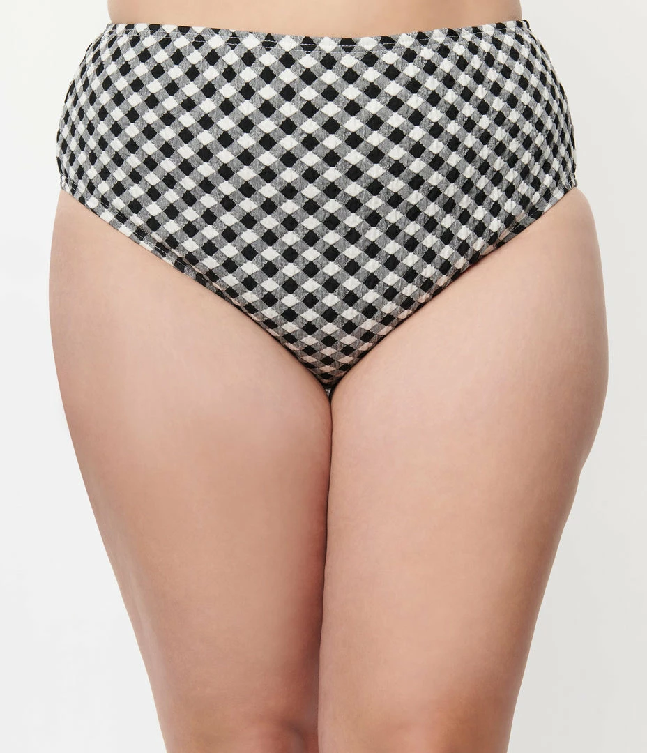 Discount ✨ Unique Vintage Plus Size Black & White Gingham Daphne Swim Bottoms 🎁