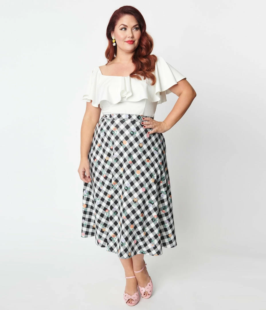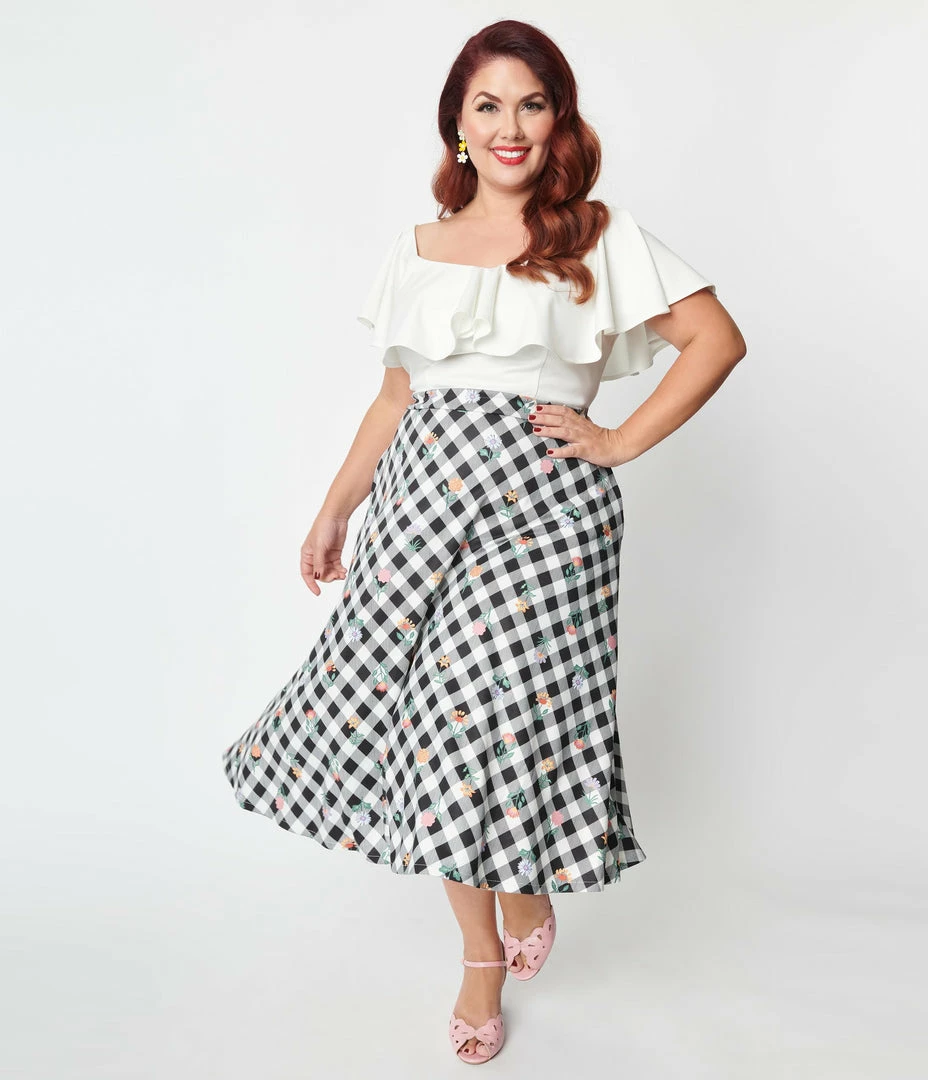 Deals ๐ฅฐ Unique Vintage Plus Size Black & White Gingham Floral Swing ๐ Dress ๐งจ