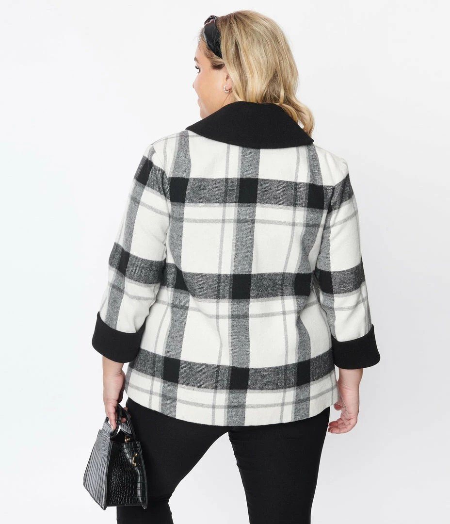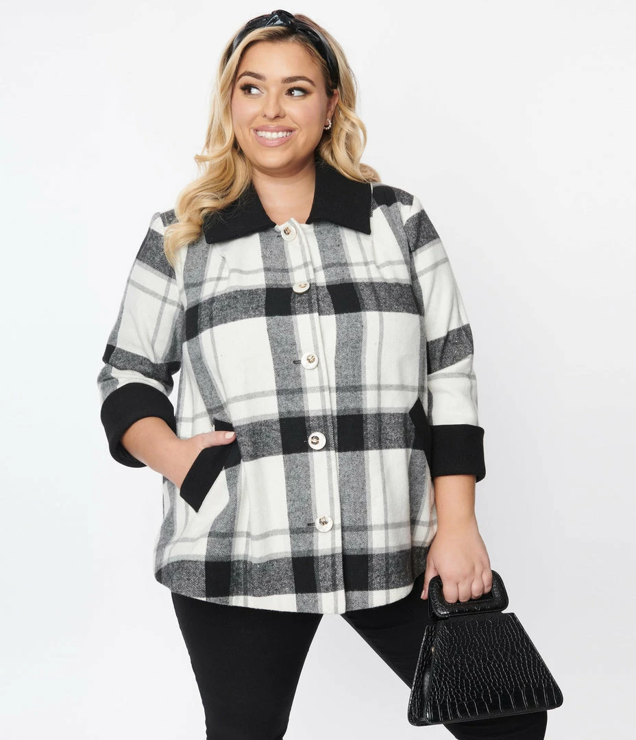 Best deal ๐ฅ Unique Vintage Plus Size Black & White Plaid Ahoy There Short Swing ๐งฅ Coat ๐