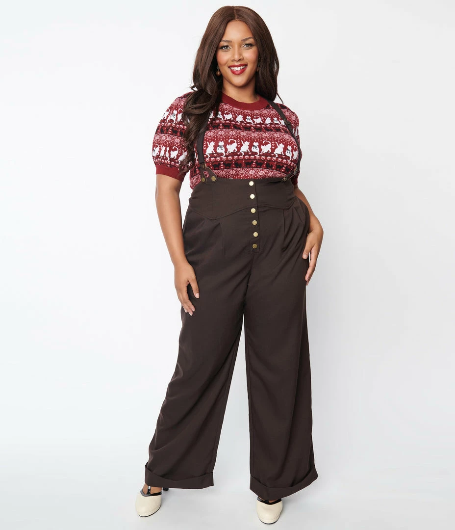 Best Sale ✔️ Unique Vintage Plus Size Brown Thelma Suspender Pants 🌟