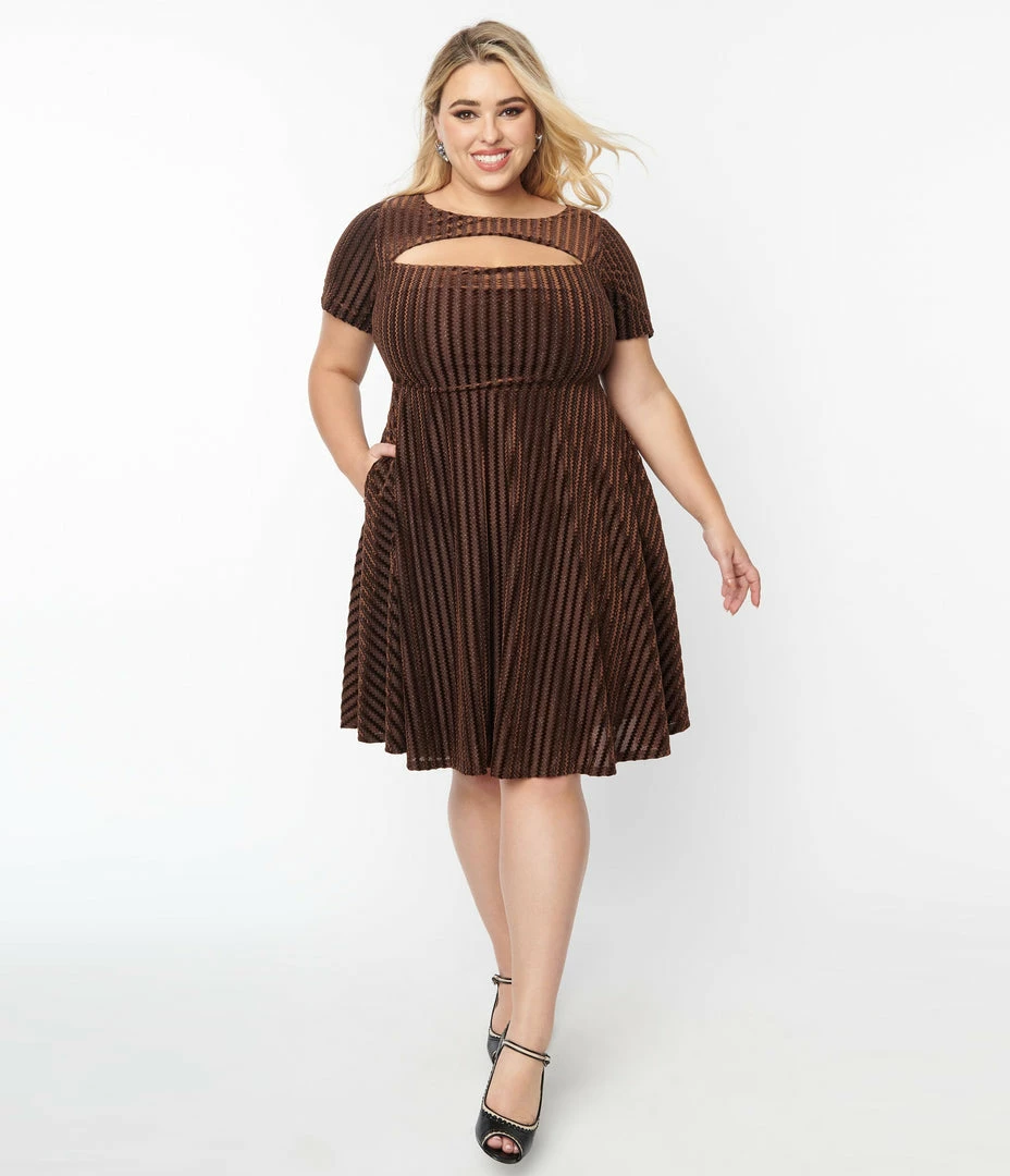 Top 10 ๐ Unique Vintage Plus Size Brown Zig Zag Velvet Swing ๐ Dress New Arrivals! ๐