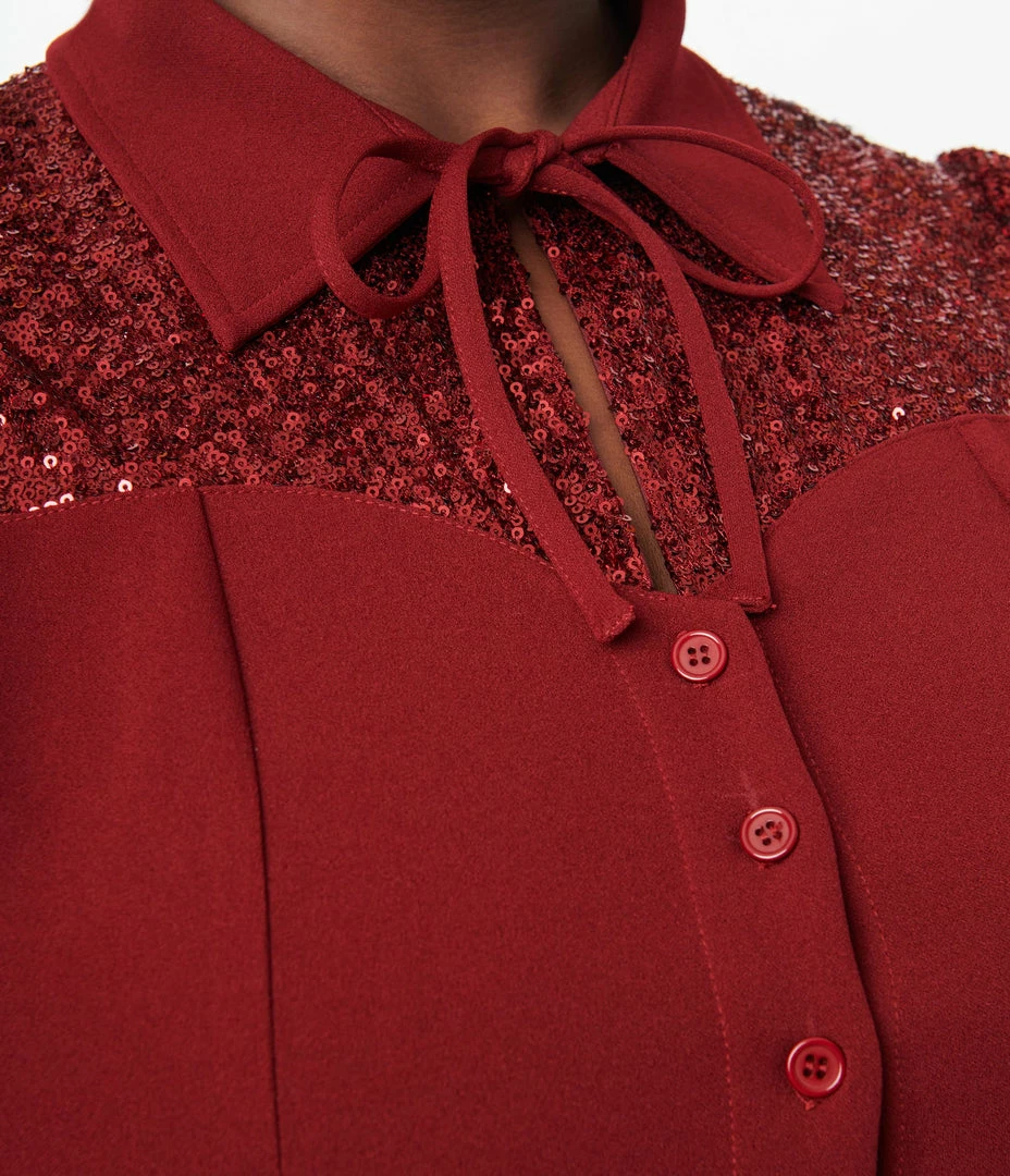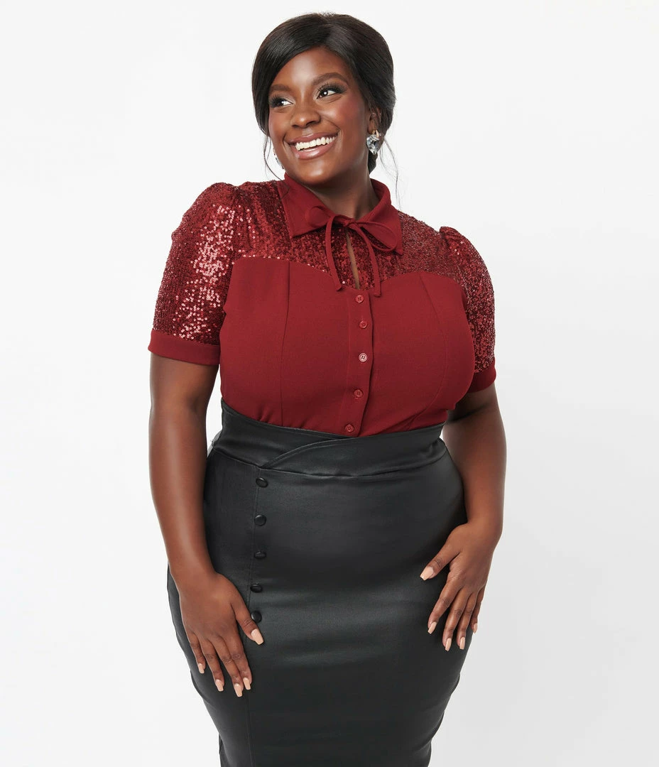 Cheapest 👏 Unique Vintage Plus Size Burgundy Sequin Addison Blouse ✨