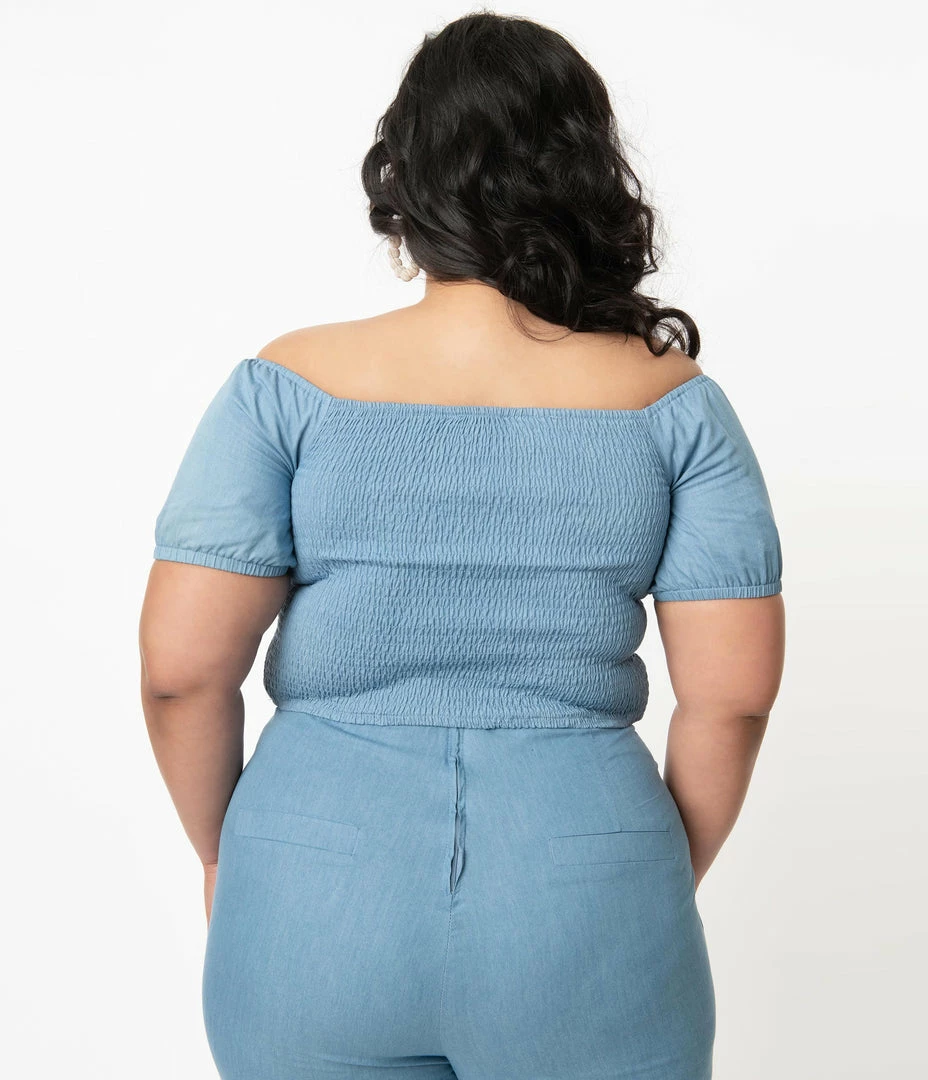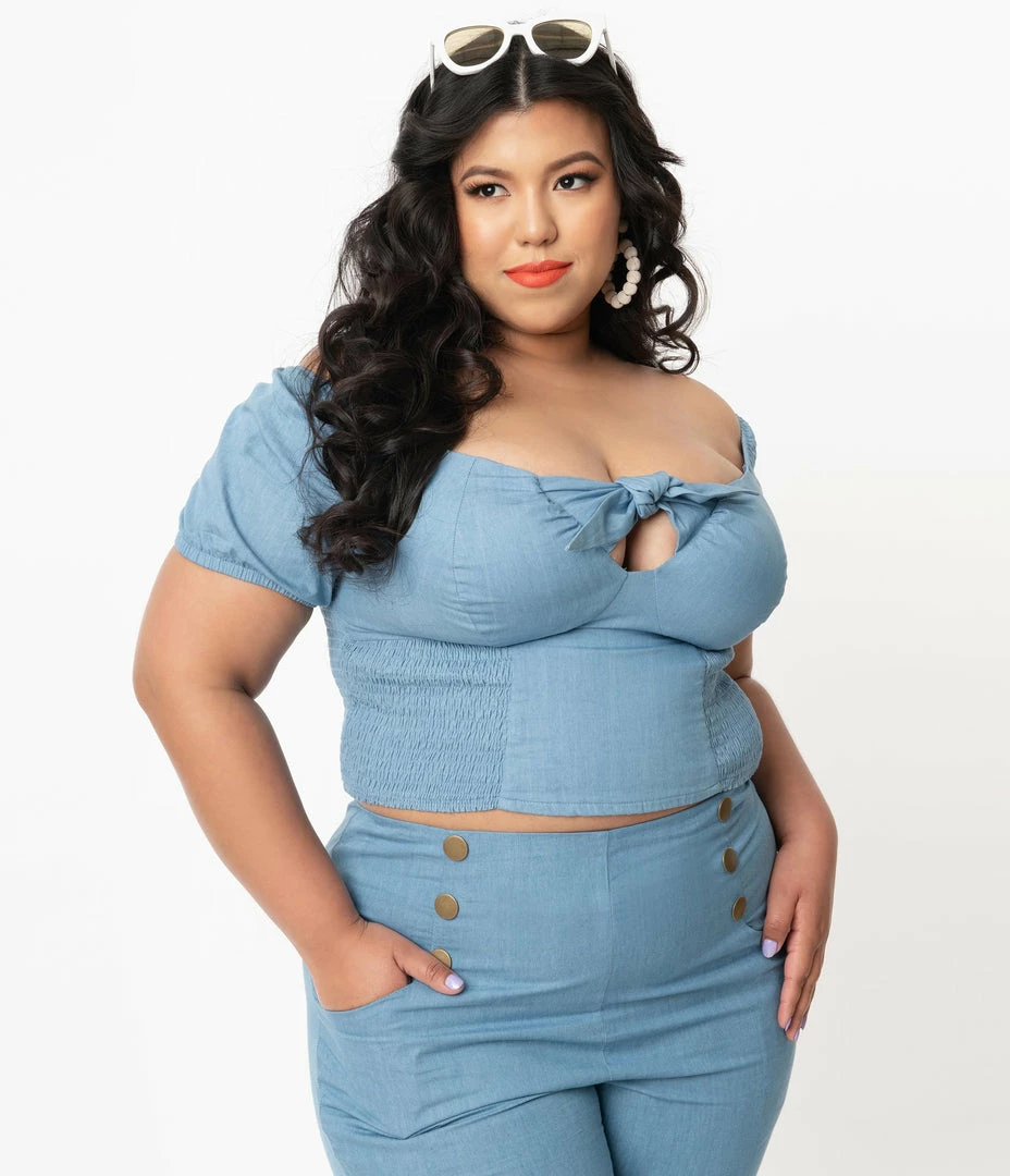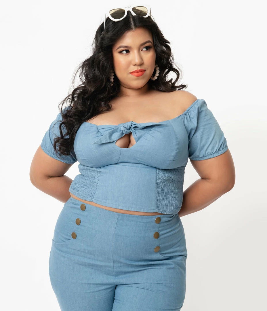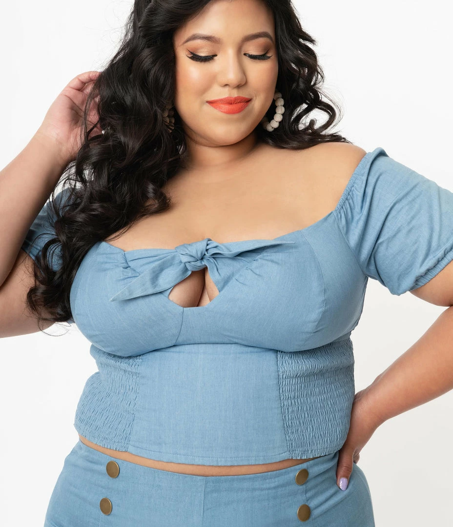 Best Pirce 🎉 Unique Vintage Plus Size Chambray Blue Turner Crop Top ⭐