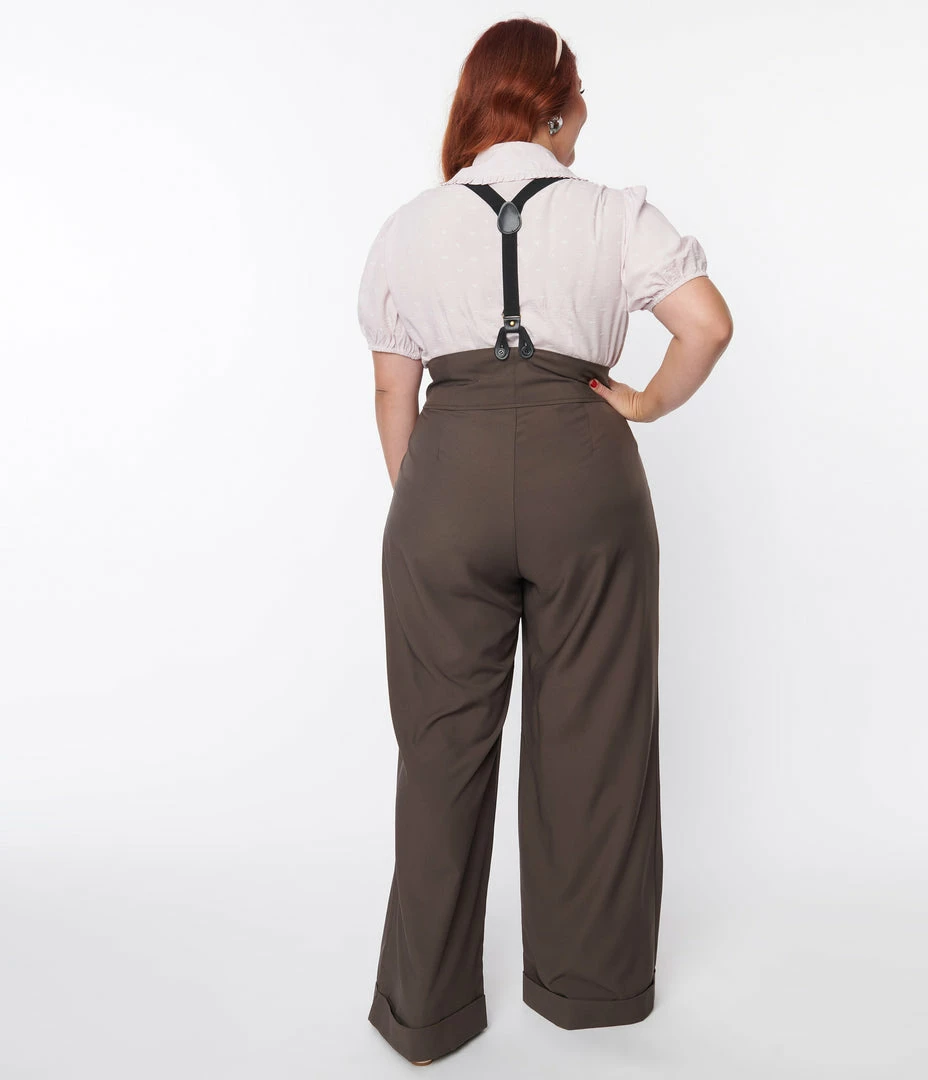 Cheapest ๐งจ Unique Vintage Plus Size Charcoal Grey Thelma Suspender Pants New Arrivals! ๐