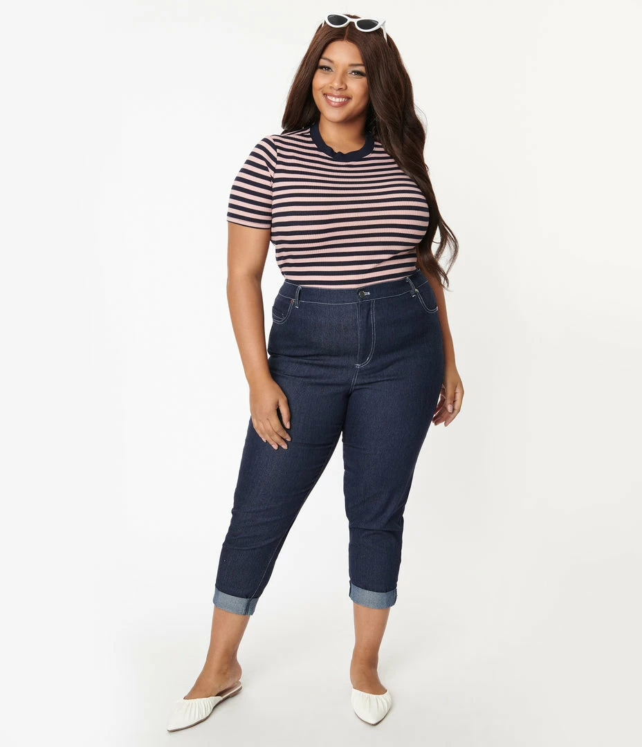 Best Sale 🔔 Unique Vintage Plus Size Dark Blue Denim Marilyn Jean Capris Sale 😉