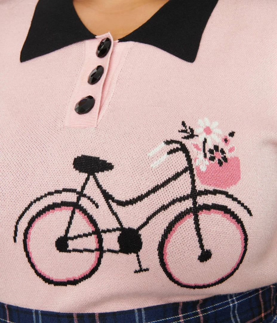 Wholesale ⌛ Unique Vintage Plus Size Dusty Rose & Black Bicycle Prim & Pretty Sweater 🎁