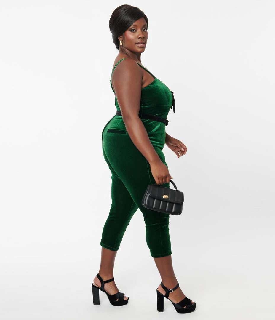 Cheap ๐ Unique Vintage Plus Size Emerald Velvet Cropped Jumpsuit Clothing ๐งจ