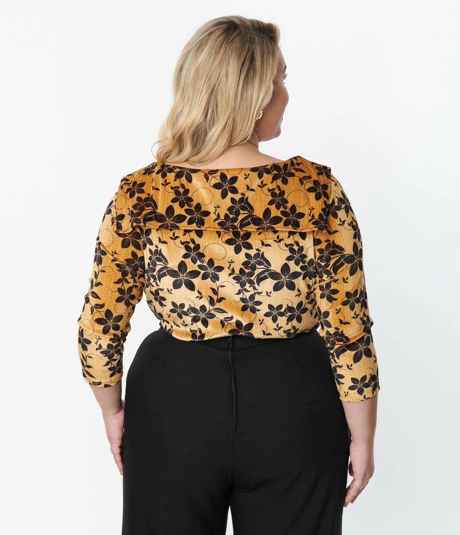 Best reviews of ๐ Unique Vintage Plus Size Gold Floral Wide Collar & Bow Top New Arrivals! ๐งจ