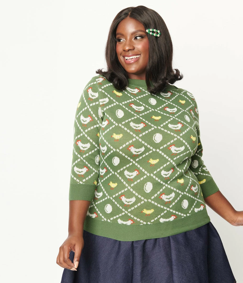 Best reviews of ๐งจ Unique Vintage Plus Size Green Chicken & The Egg Minou Sweater New Arrivals! ๐