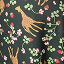 This sweet flare is crafted in a marvelous stretch knit that boasts a beautiful print of giraffes, red strawberries, and white florals cascading throughout the emerald green backdrop. Topped by a classic collar, the attached waist ties provide a secure wrap. Outfitted with side pockets!