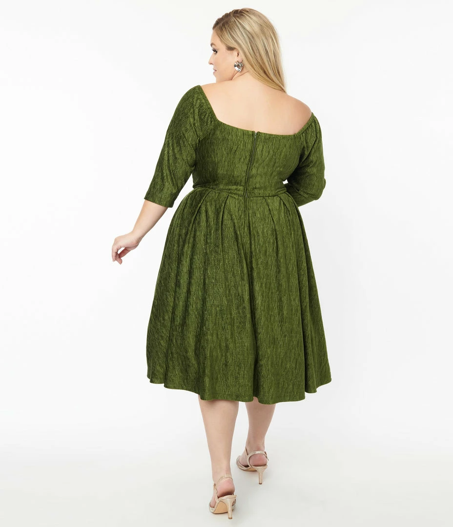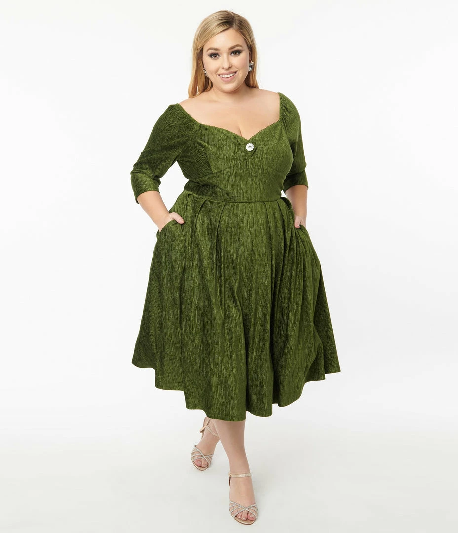 Promo ✔️ Unique Vintage Plus Size Green Velvet Lamar Swing 👗 Dress New Arrivals! ✔️