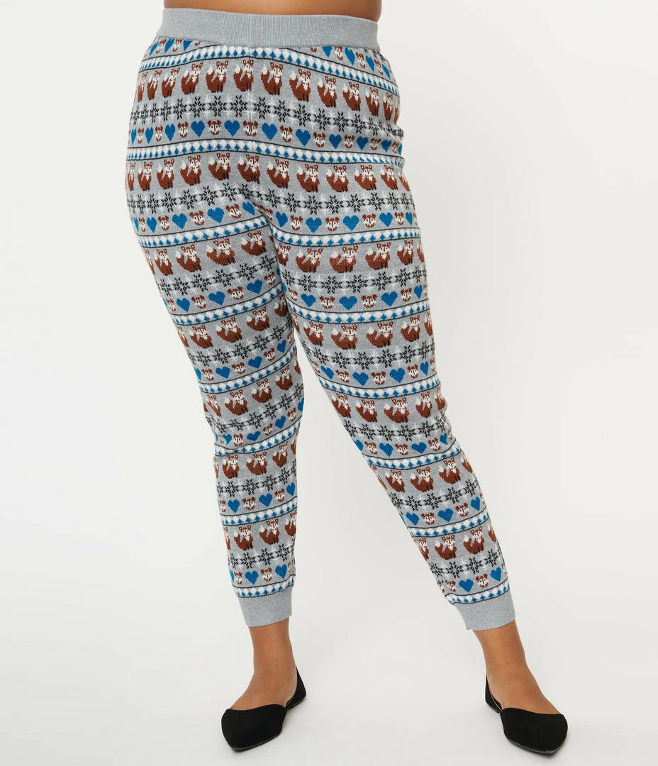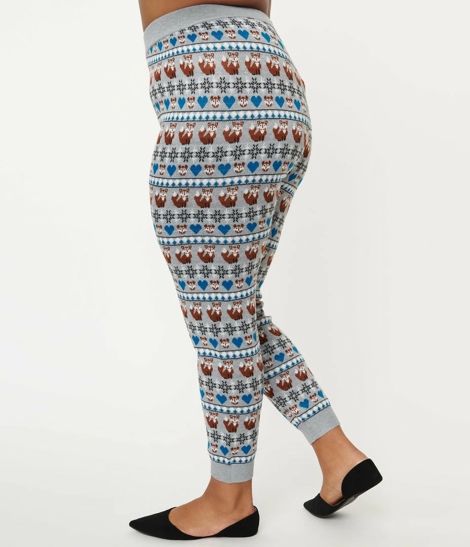 Deals โจ Unique Vintage Plus Size Grey Fair Isle Foxes Sycamore Knit Leggings Sale ๐