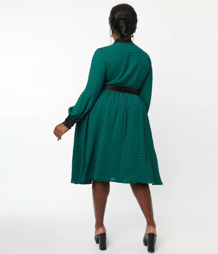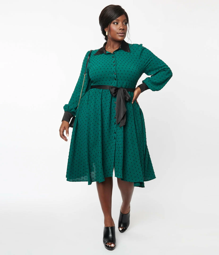 Wholesale 😀 Unique Vintage Plus Size Hunter Green & Black Clip Dot 👕 Shirtdress New Arrivals! 💯