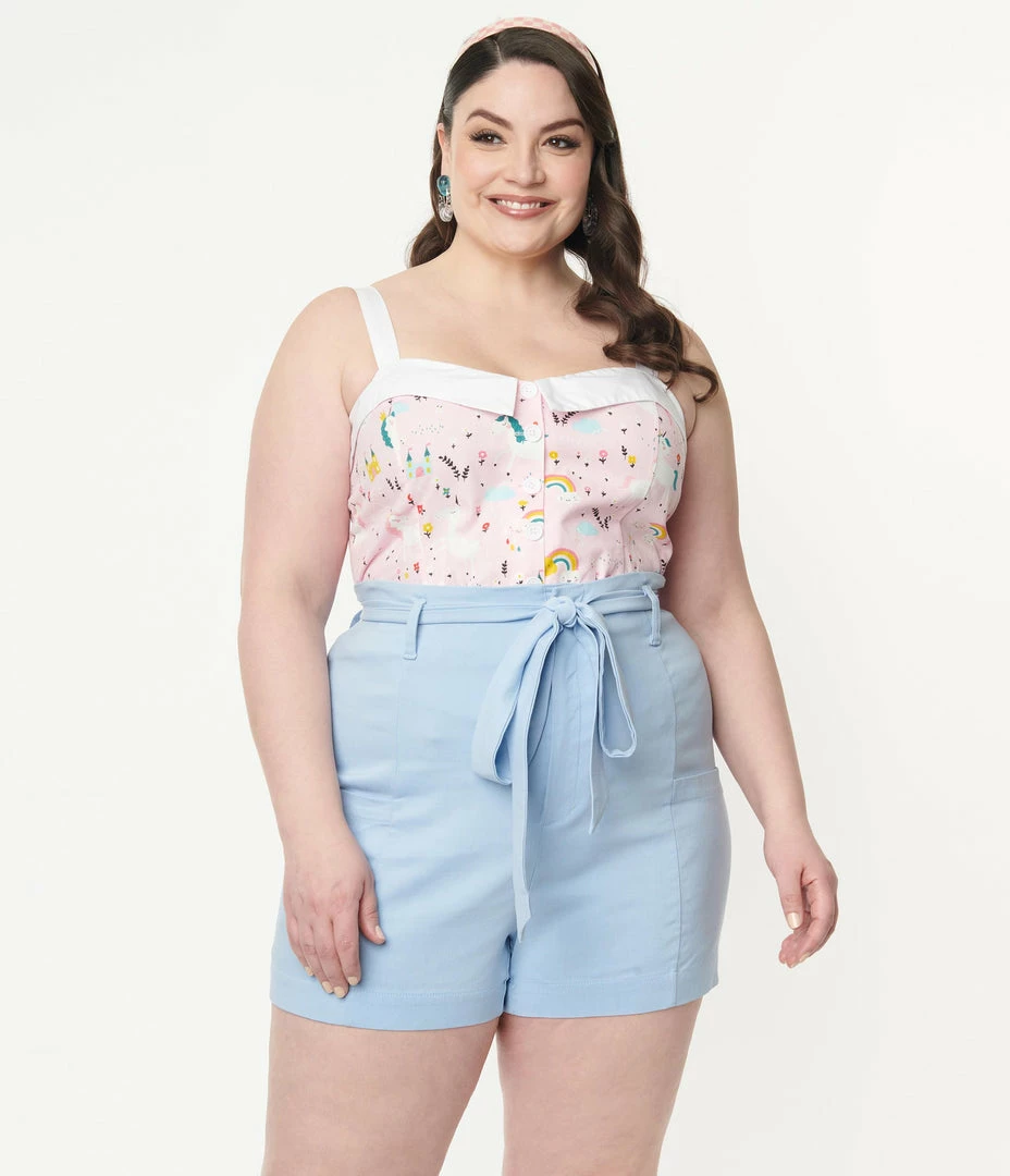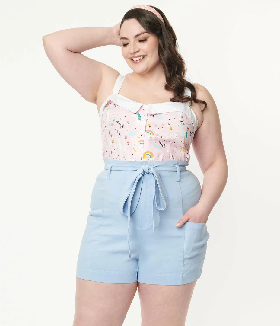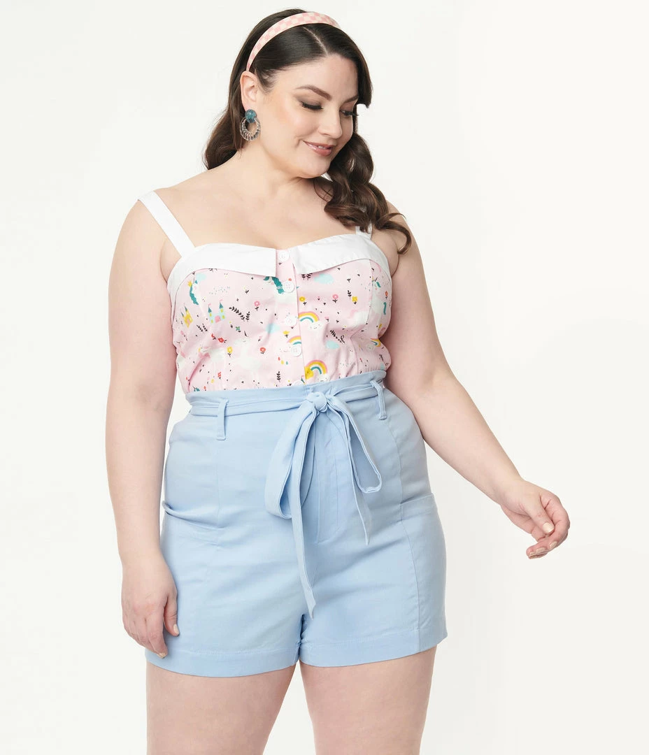 Buy ๐ฏ Unique Vintage Plus Size Light Blue High Waist Tied & True Shorts ๐