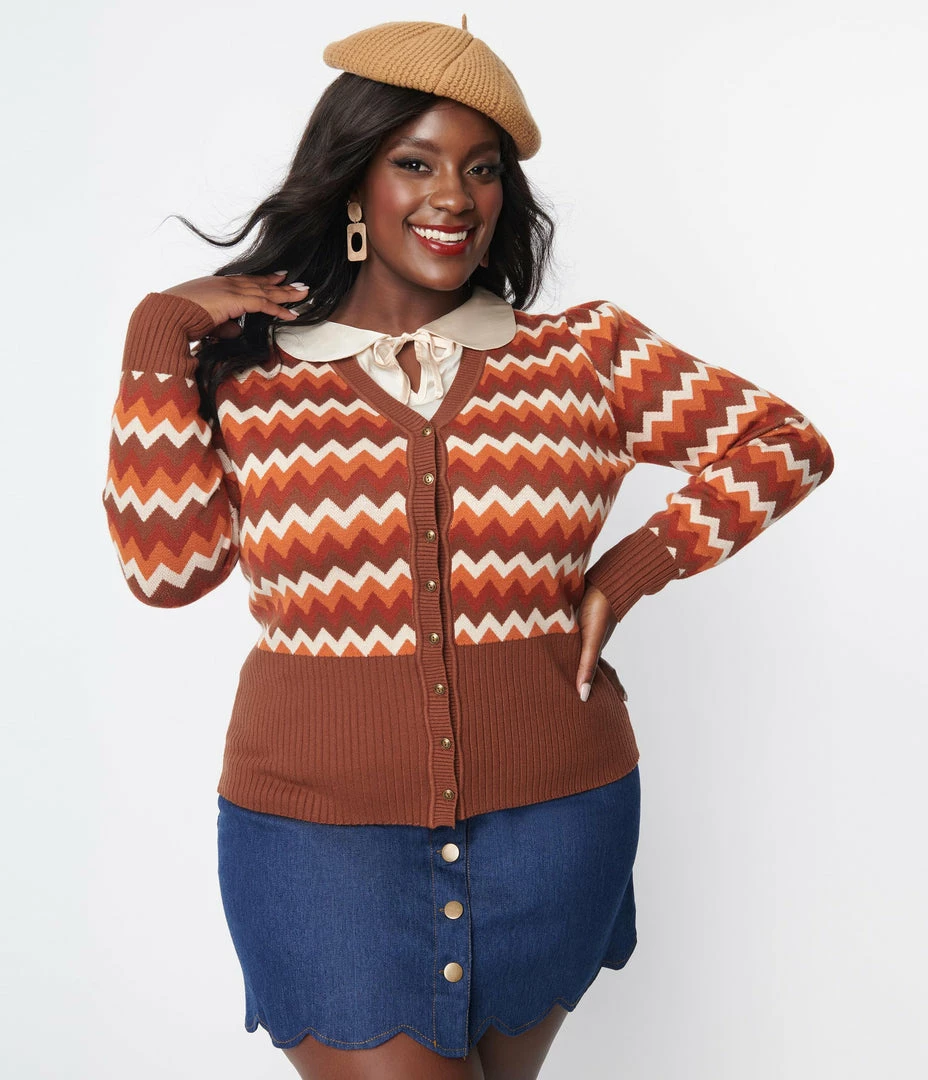Budget ๐ฅฐ Unique Vintage Plus Size Multi Brown Chevron Cardigan Clothing ๐งจ