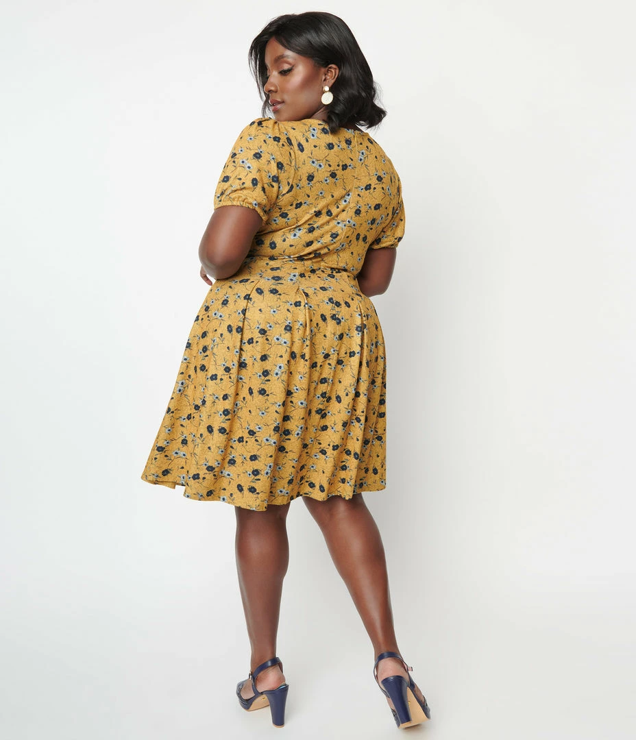 Best reviews of 🛒 Unique Vintage Plus Size Mustard & Navy Floral Flare 👗 Dress 😍
