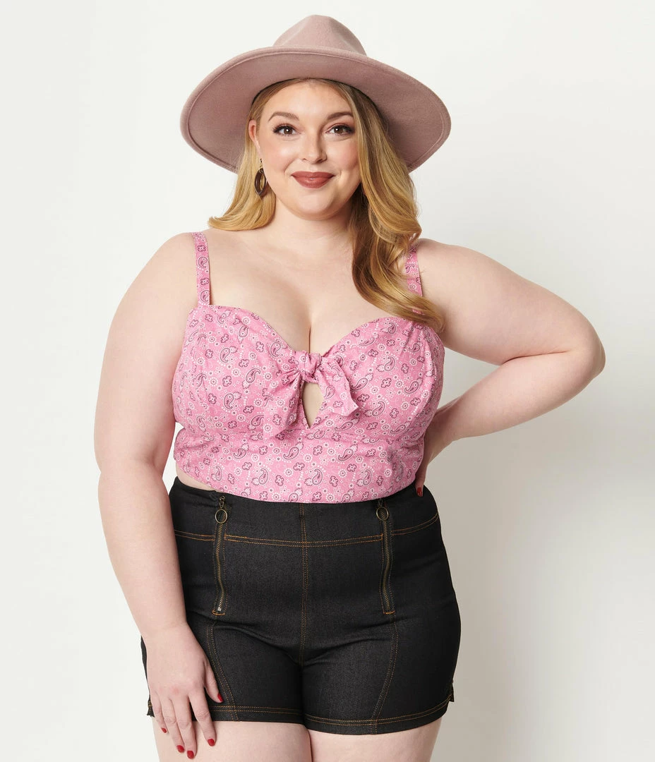 Best Sale ๐งจ Unique Vintage Plus Size Pink Bandana Print Chessie Crop Top Sale ๐
