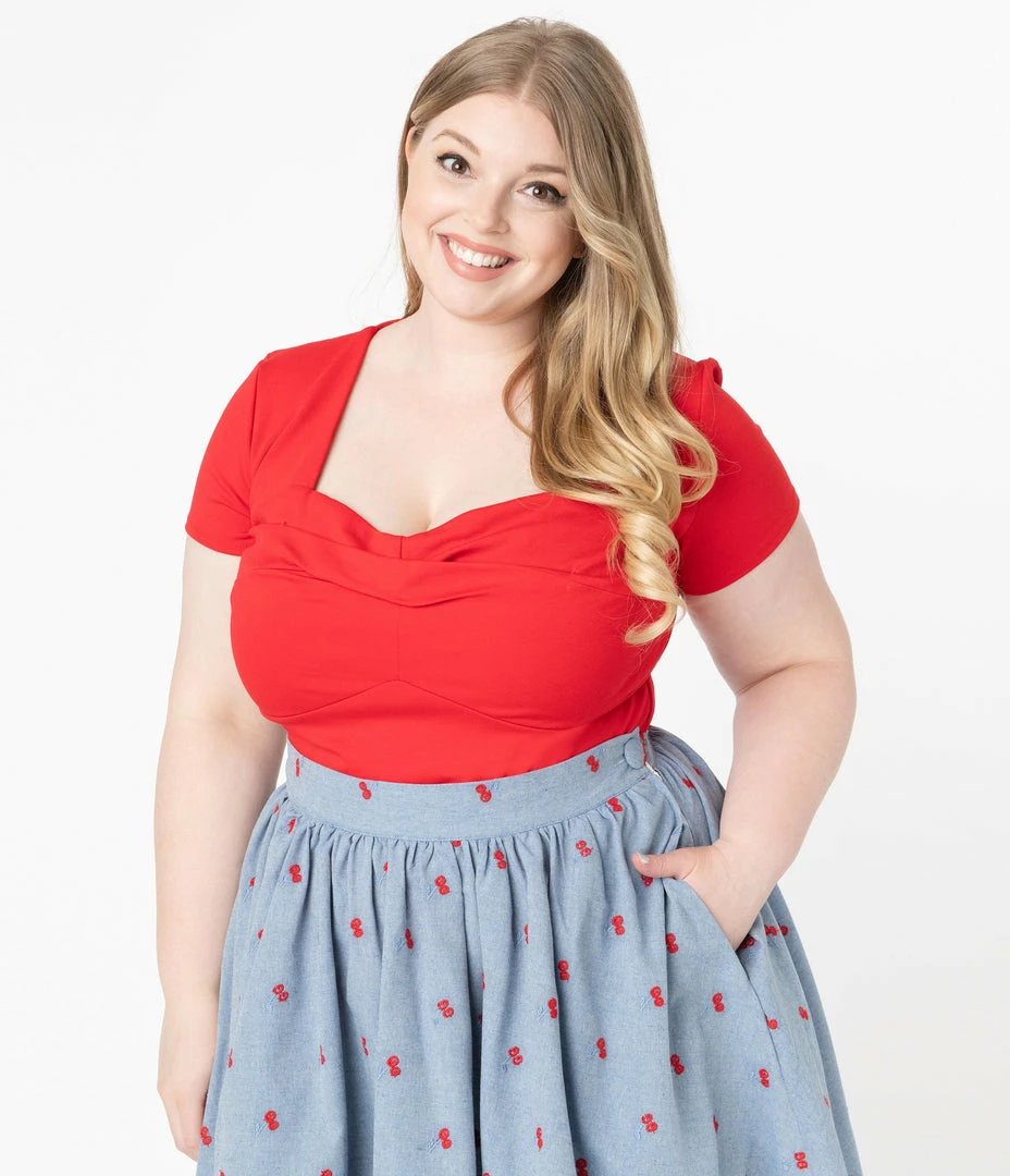 Promo ✨ Unique Vintage Plus Size Red Sweetheart Ruthie Top Sale 😉