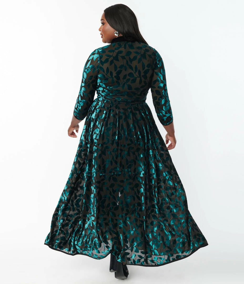 Outlet ๐ Unique Vintage Plus Size Teal Green Devore Velvet Tallullah Duster Clothing ๐