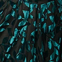 This dramatic duster is crafted in a beautiful teal green Devorรฉ velvet that dances with a leaf pattern throughout. Complete with a self tie neck bow and button waist. Pair with the matching jumpsuit for a jaw-dropping opening act!