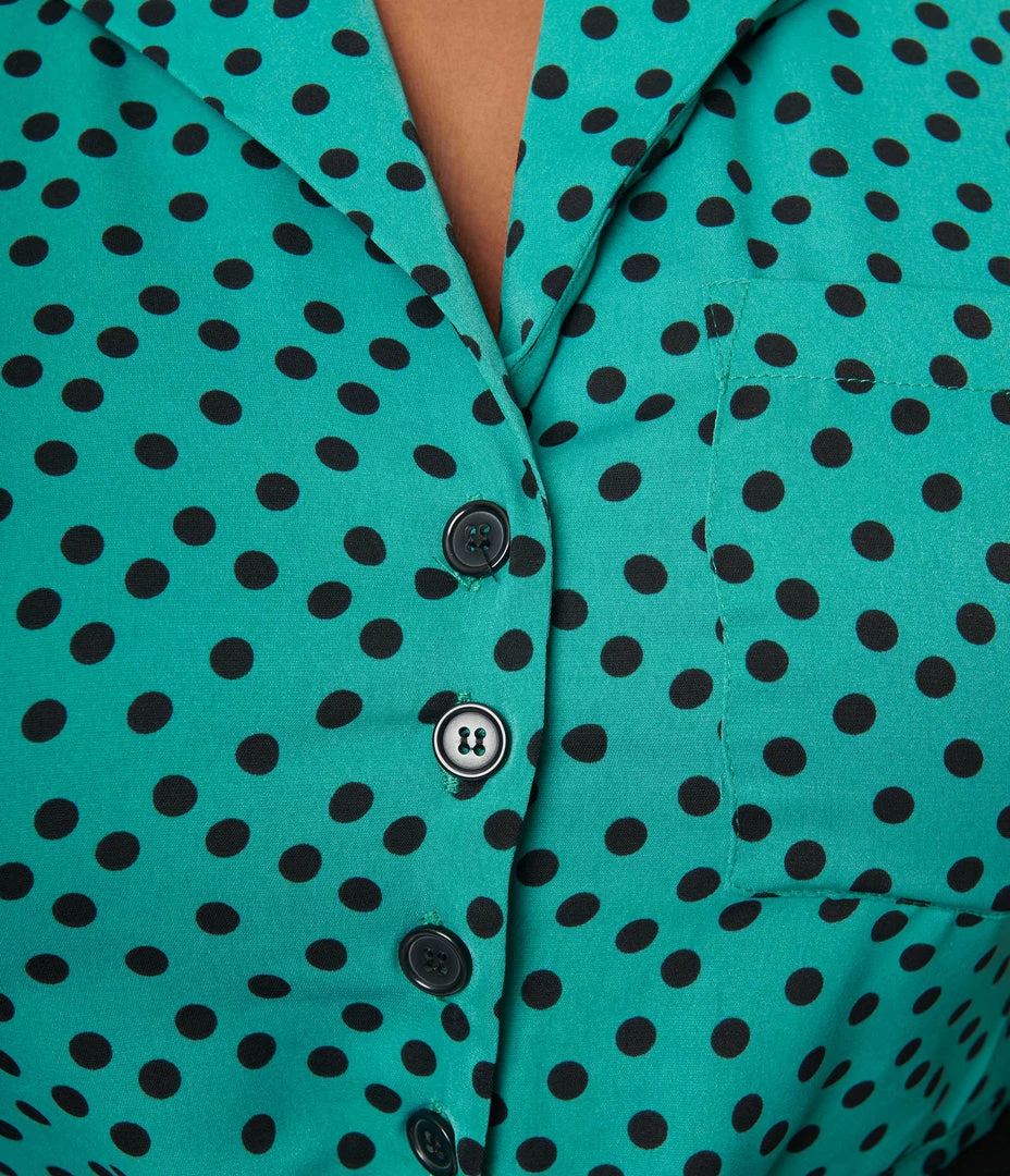 Discount ๐ Unique Vintage Plus Size Teal Polka Dot Shirley Crop Top New Arrivals! โ