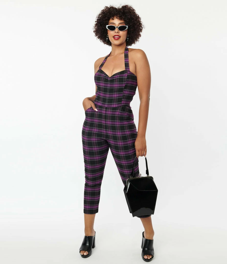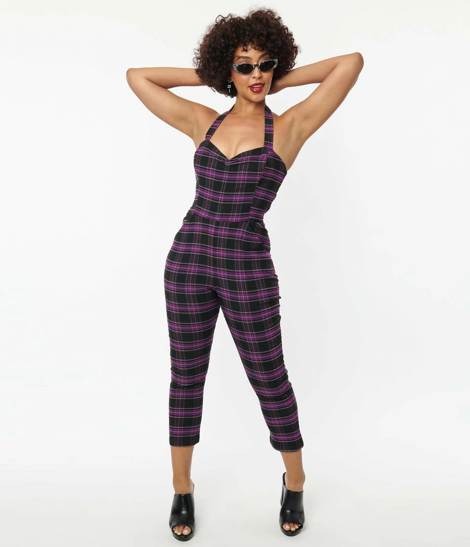 Promo 😉 Unique Vintage Purple & Black Plaid Marcel Jumpsuit 🔔