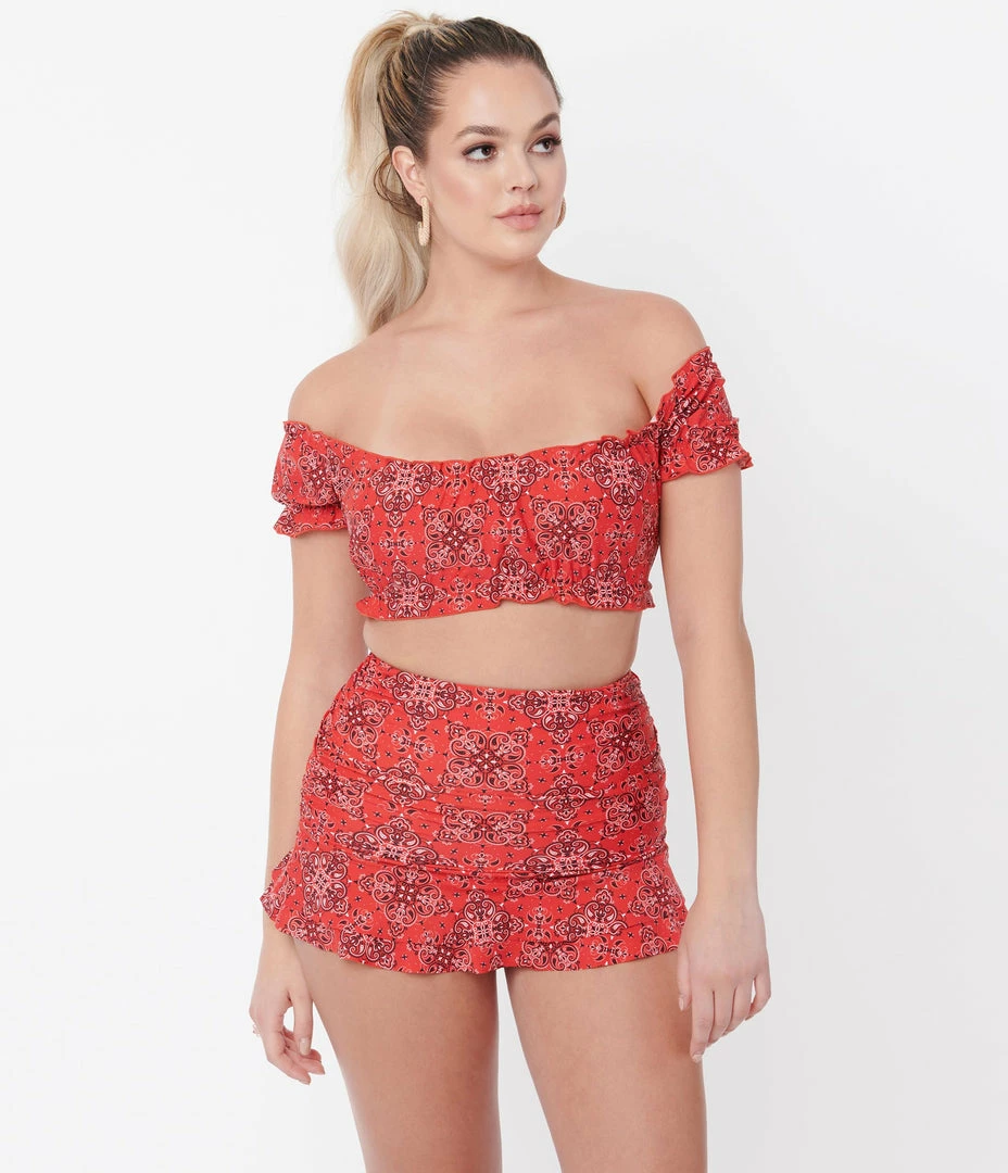 Hot Sale 😍 Unique Vintage Red Bandana Print Alice Swim 👗 Skirt ⭐