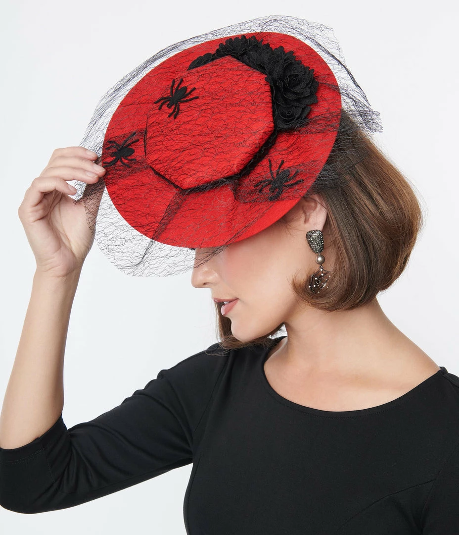 Best Sale ๐ Unique Vintage Red & Black Spider Disc Fascinator ๐ฅ