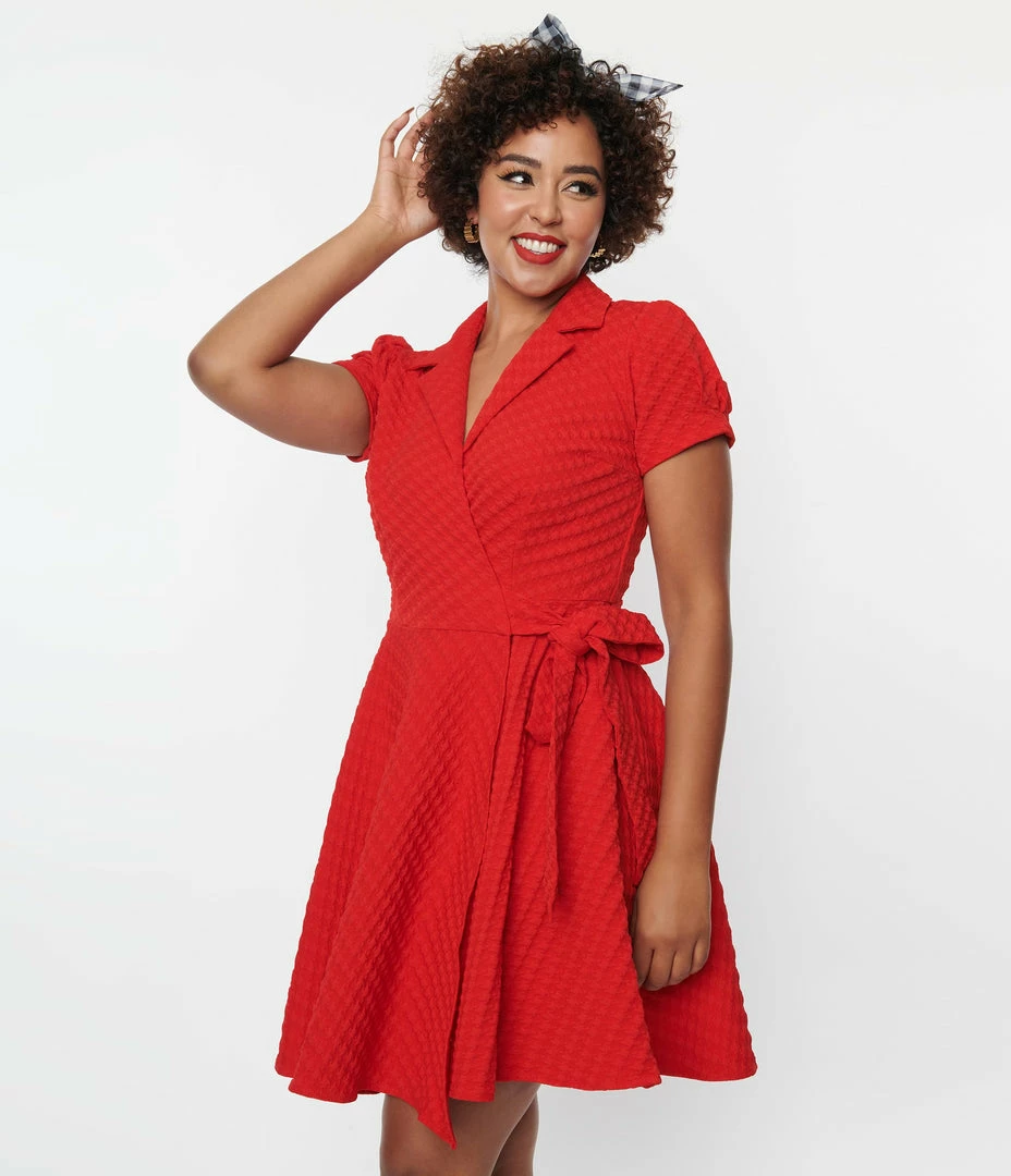 Buy ๐ Unique Vintage Red Textured Houndstooth Wrap ๐ Dress New Arrivals! ๐