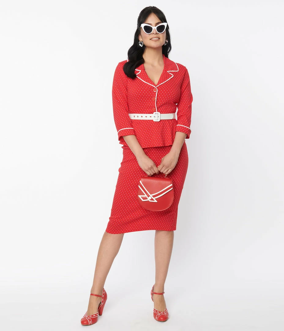 Best Pirce ๐ Unique Vintage Red & White Pin Dot Cooper Suit ๐ Dress ๐งจ
