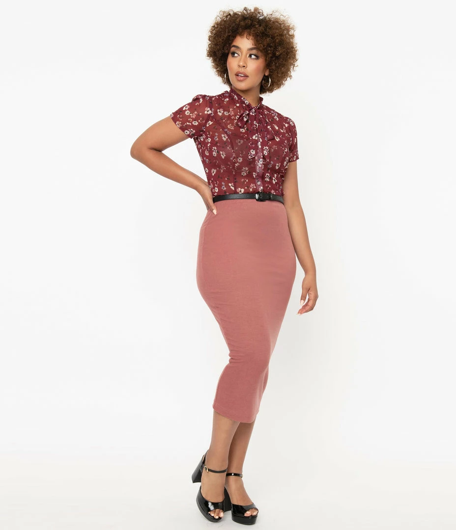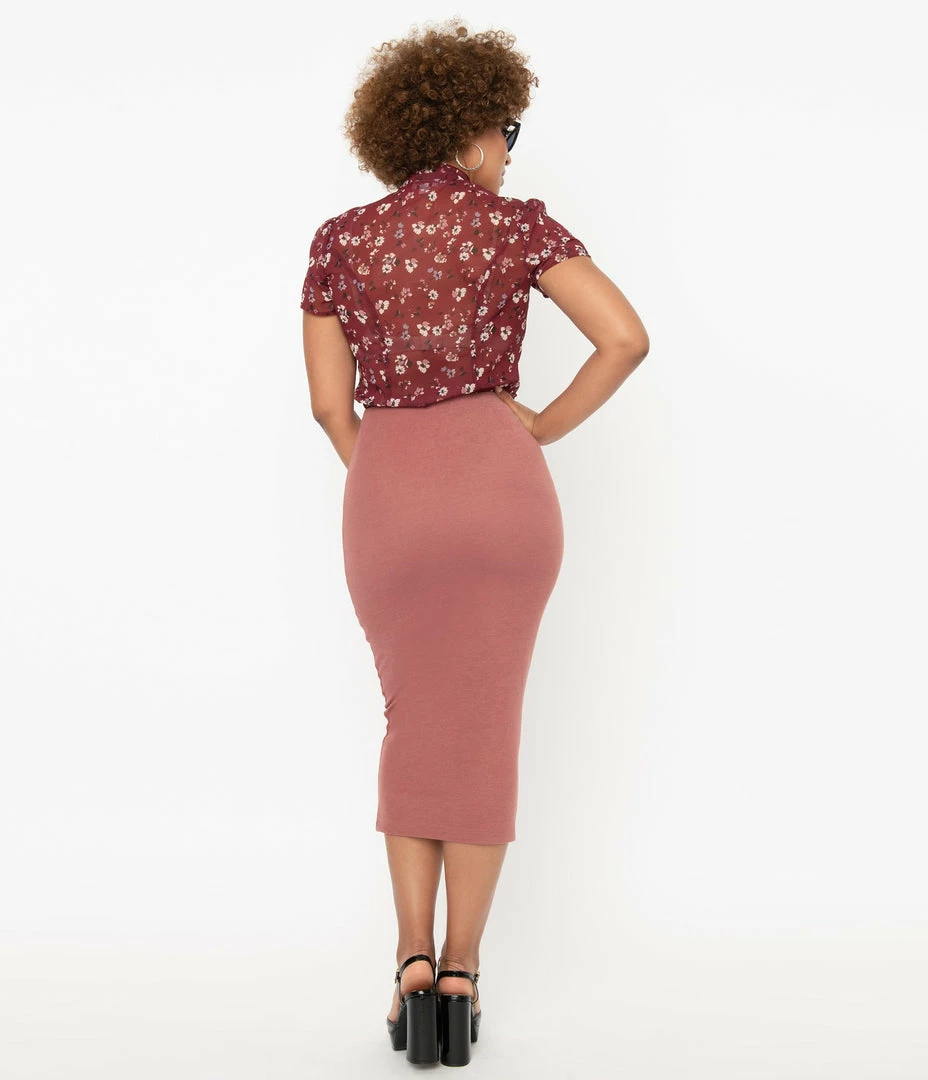 Lose yourself in the movement, darling! This sultry separate from Unique Vintage is crafted in a soft knit fabric that flatters your figure in solid rose pink. The Cyd Skirt features a high waistline, cinched with an elastic banded waist while the longer silhouette drops past your knees for a wondrous wiggle!