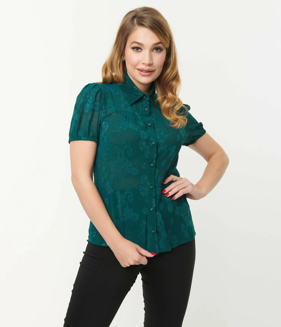 Cheapest 🎉 Unique Vintage Teal Burnout Floral Caroline Blouse ⭐