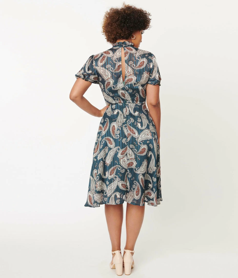 Hot Sale ๐ Unique Vintage Teal Paisley Print Leota Swing ๐ Dress Sale ๐ฏ