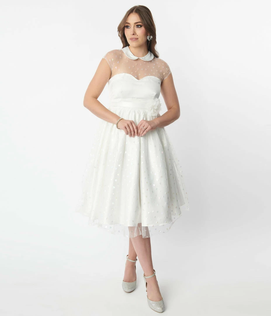 Brand new โค๏ธ Unique Vintage White & Iridescent Heart Bridal Swing ๐ Dress Clothing ๐ฅฐ