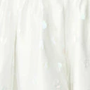 A breathtaking bridal swing dress crafted in a satin-like fabric with an overlay of white mesh that gleams with iridescent hearts printed throughout. Outfitted with a back zipper, back button keyhole, a belt, and side pockets.