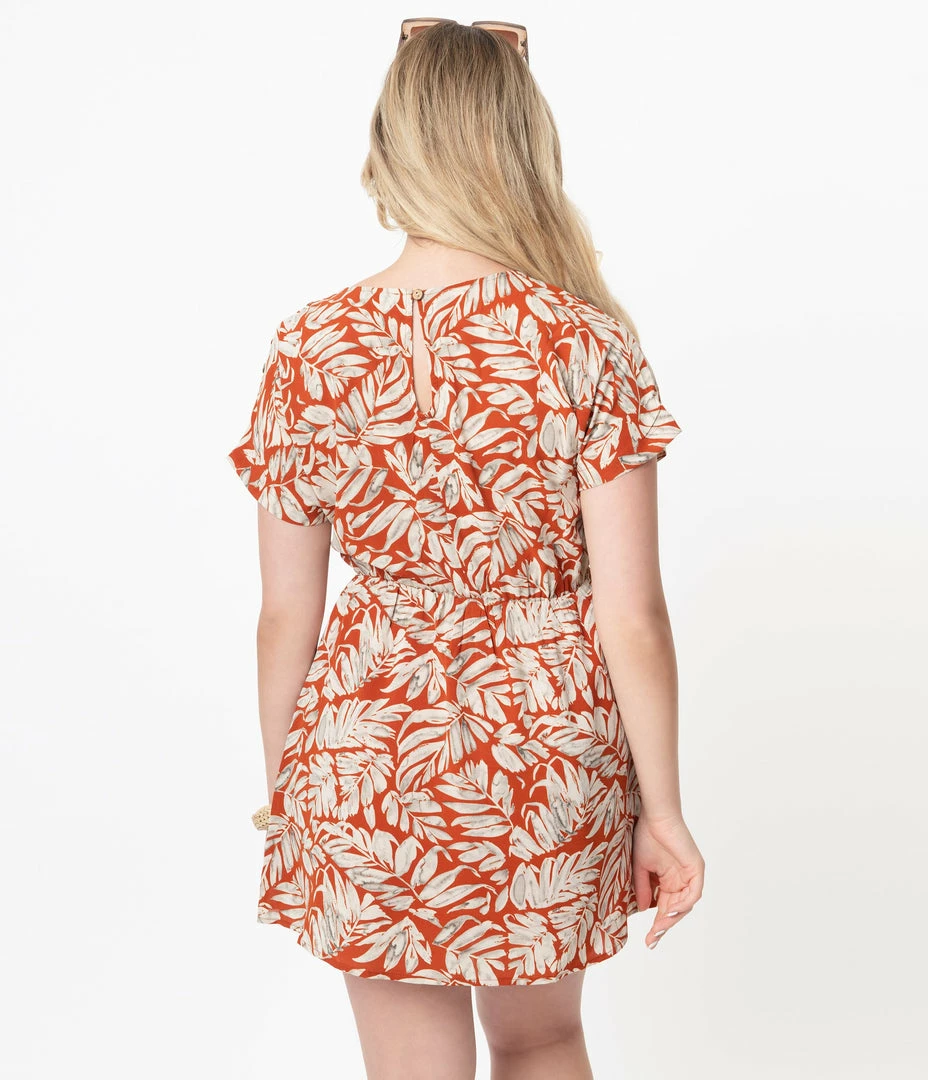 Coupon ๐ VERY J Rust & Ivory Leaf Printed Mini ๐ Dress Sale ๐ฅฐ