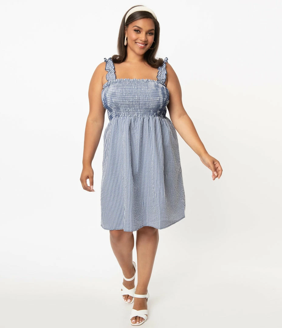 Best reviews of โ White Birch Plus Size Blue & White Gingham Smocked Mini ๐ Dress Sale โจ